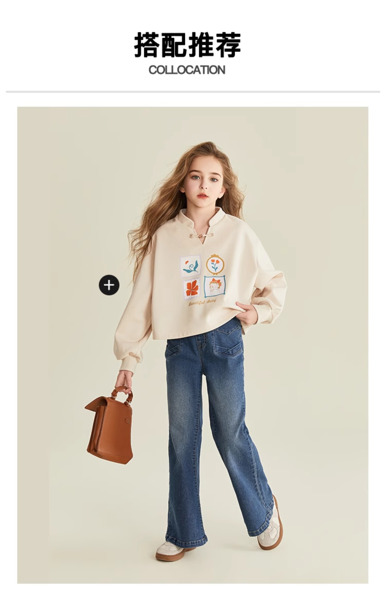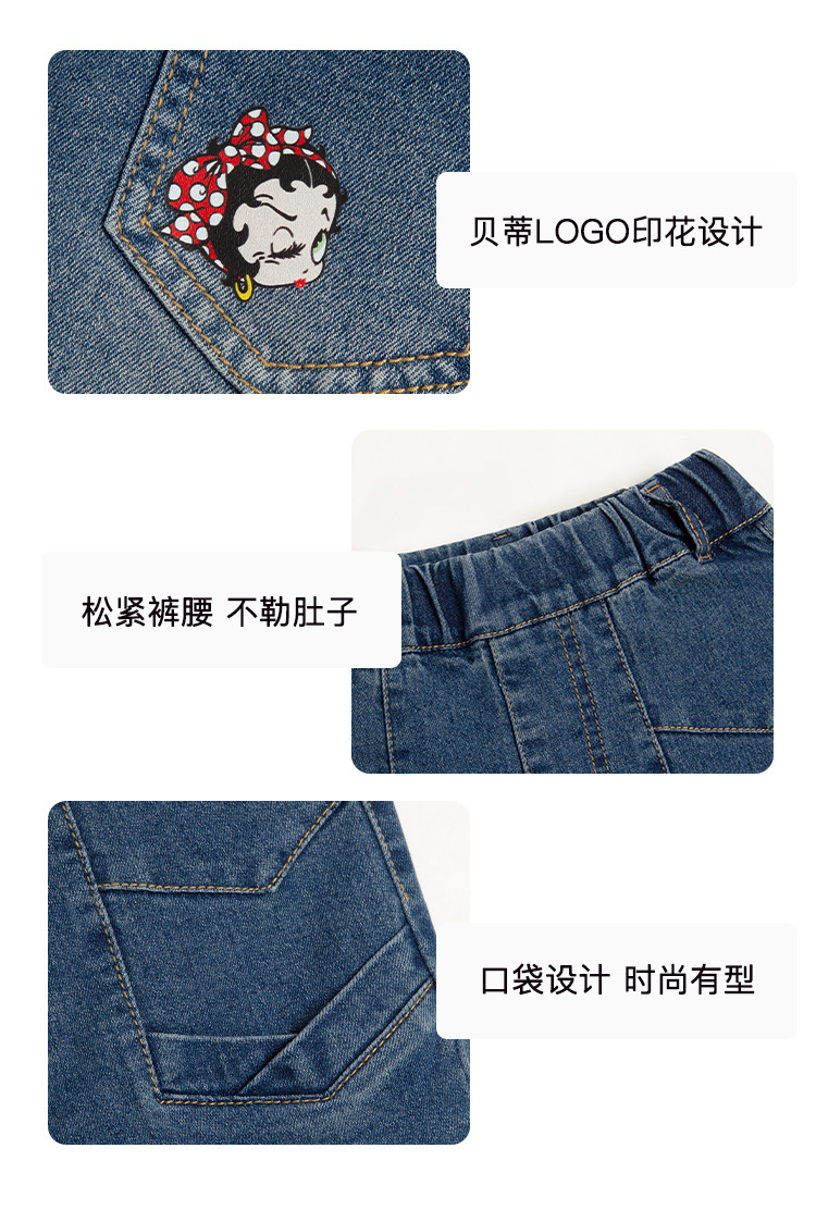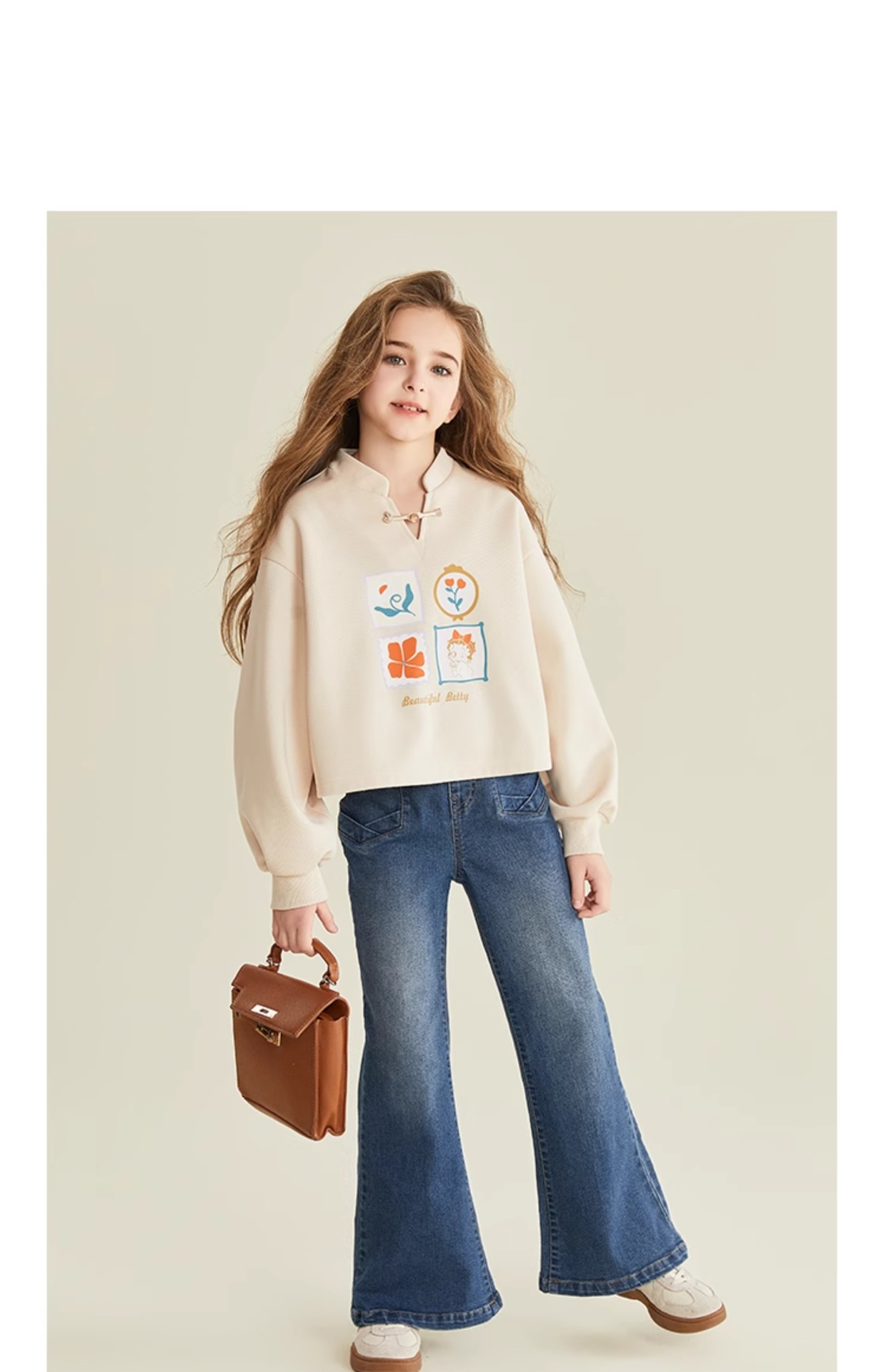 베티 아동복 소녀 봄과 가을 슬림 캐주얼 데님 바지 2025 새로운 어린이 대형 어린이 느슨한 바지스토어 가기