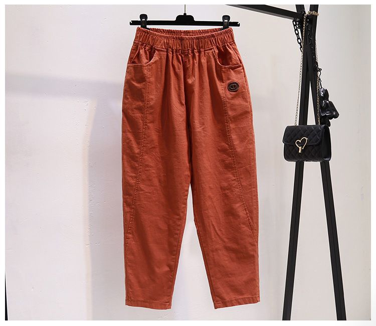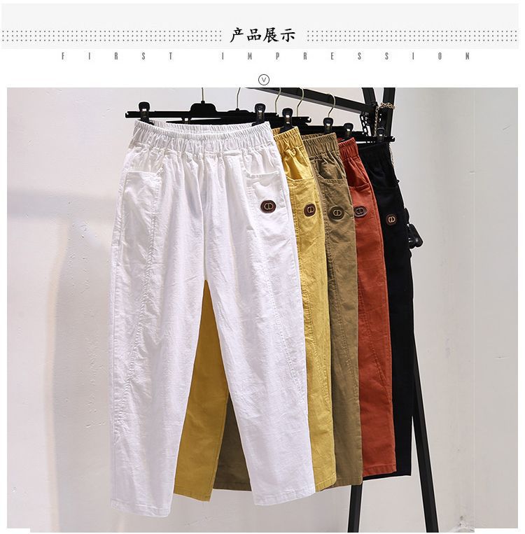 대형 통통녀 캐주얼 바지 여성의 새로운 여름 여성 바지 넓은 다리 느슨한 자른 당근 하렌 바지스토어 가기