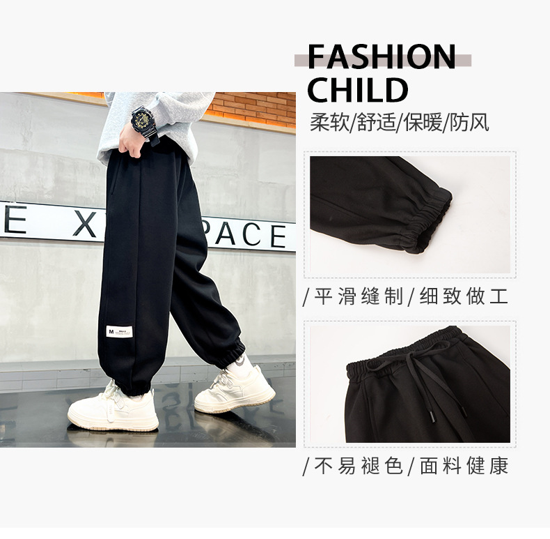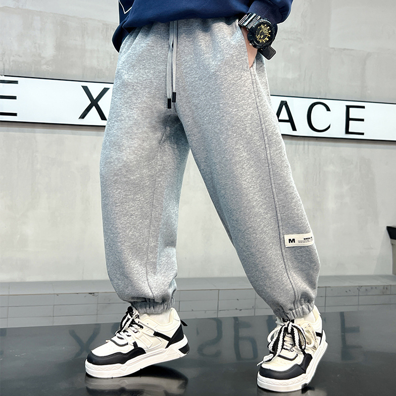소년 바지 2025 봄과 가을 새로운 스포츠 가을 착용 바지 소년 큰 어린이 가을 겨울 기모 느슨한 바지스토어 가기