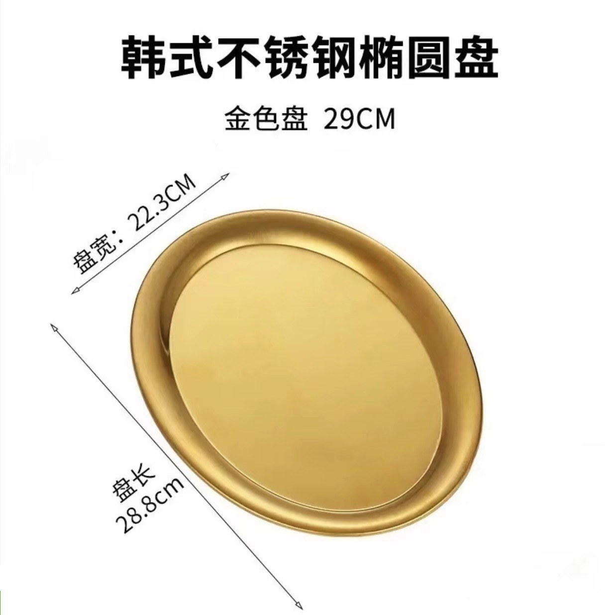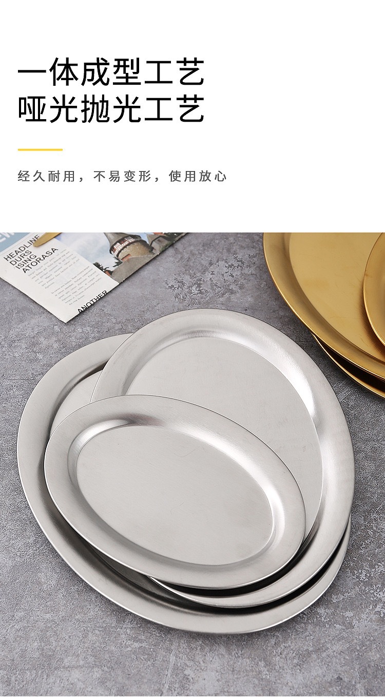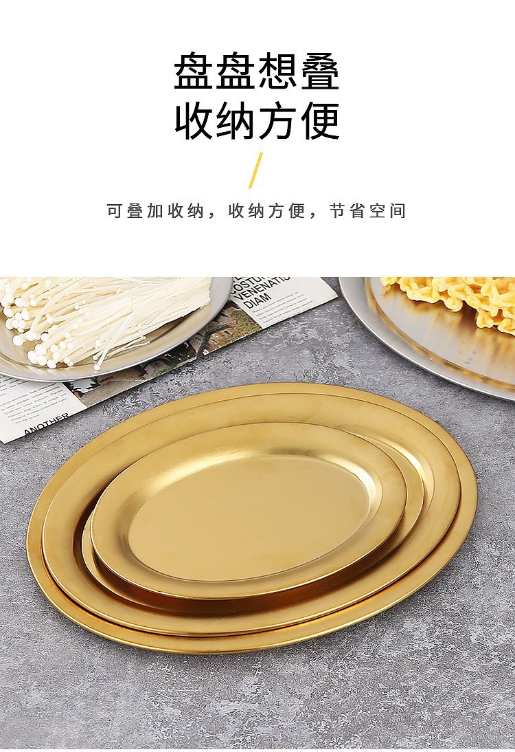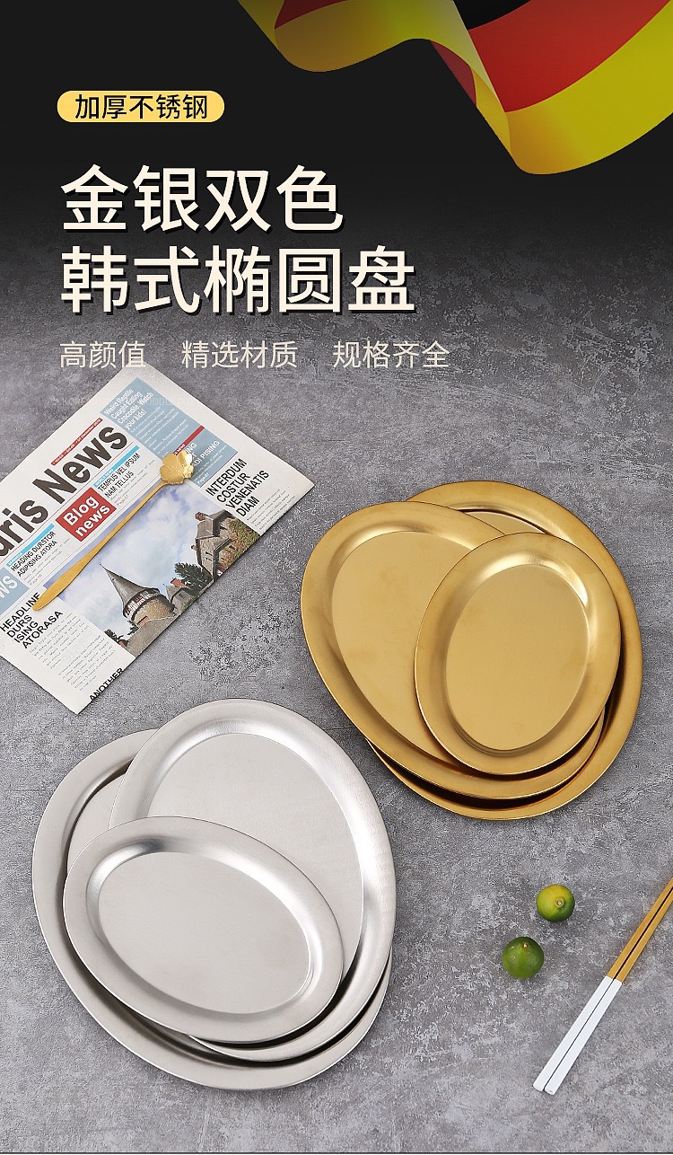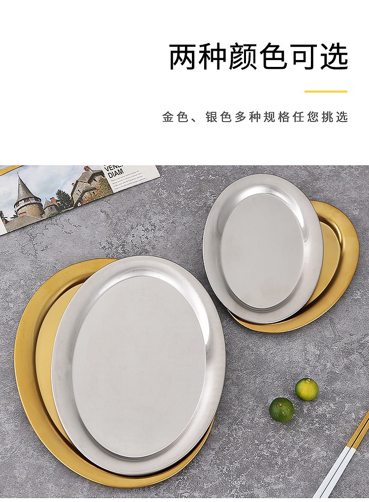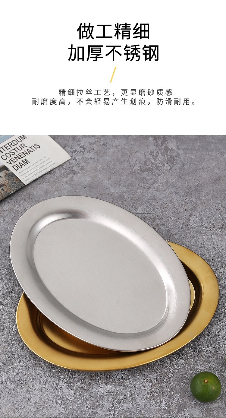 공장 직접 한국 스테인리스 생선 접시 타원형 접시 찐 생선 접시 황금 창조적 인 데니어 플레이트 바베큐 요리