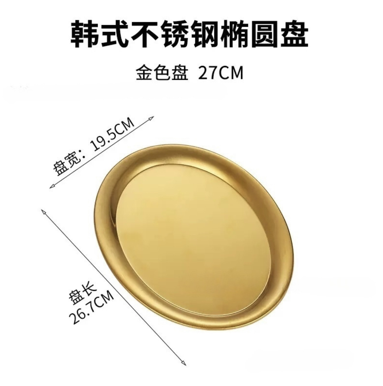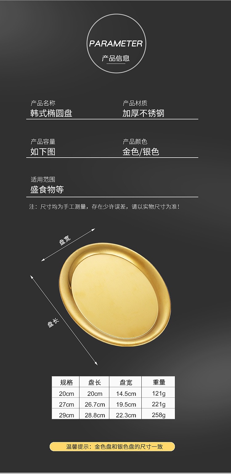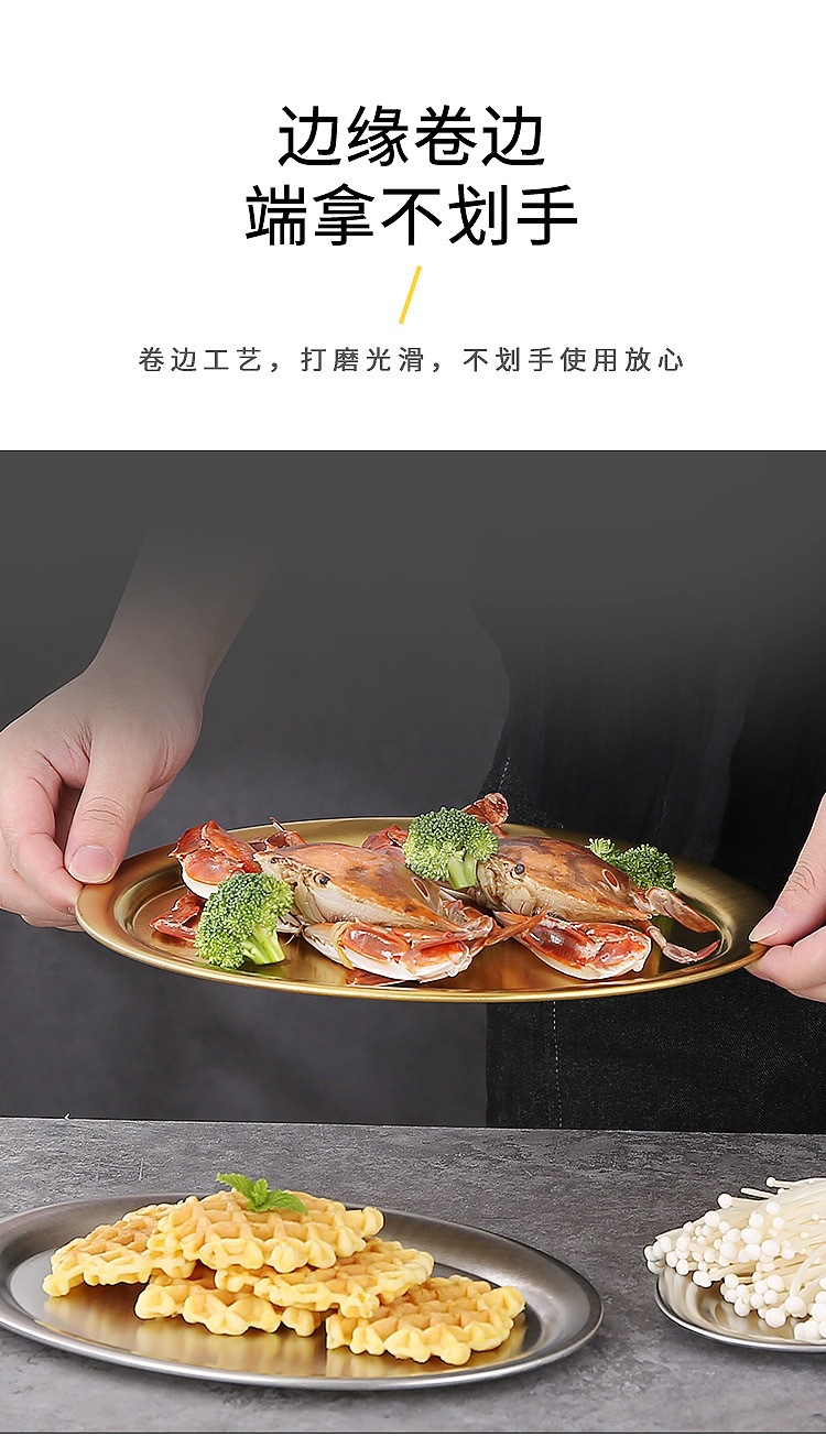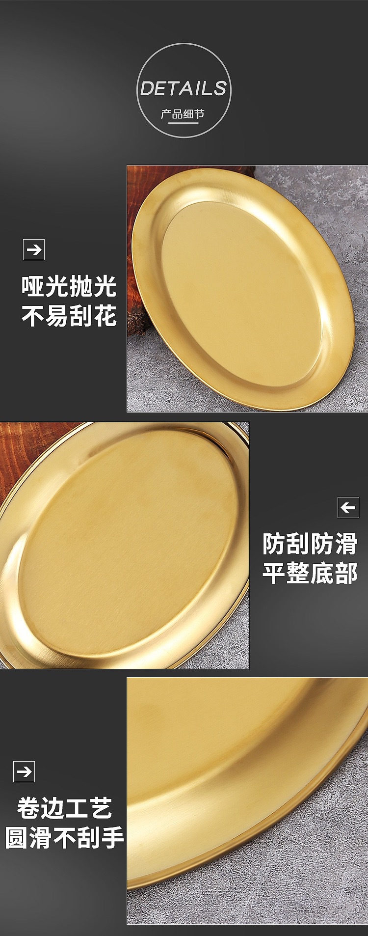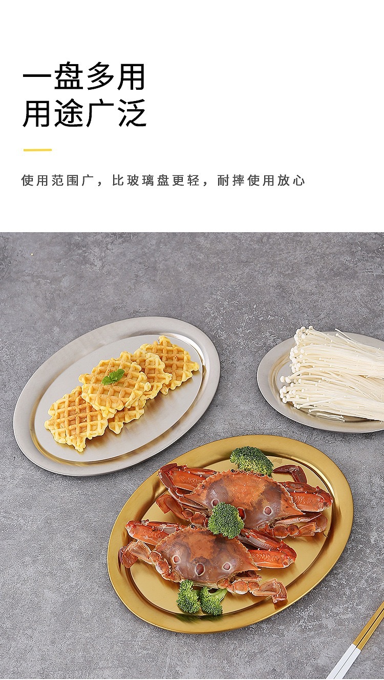 공장 직접 한국 스테인리스 생선 접시 타원형 접시 찐 생선 접시 황금 창조적 인 데니어 플레이트 바베큐 요리