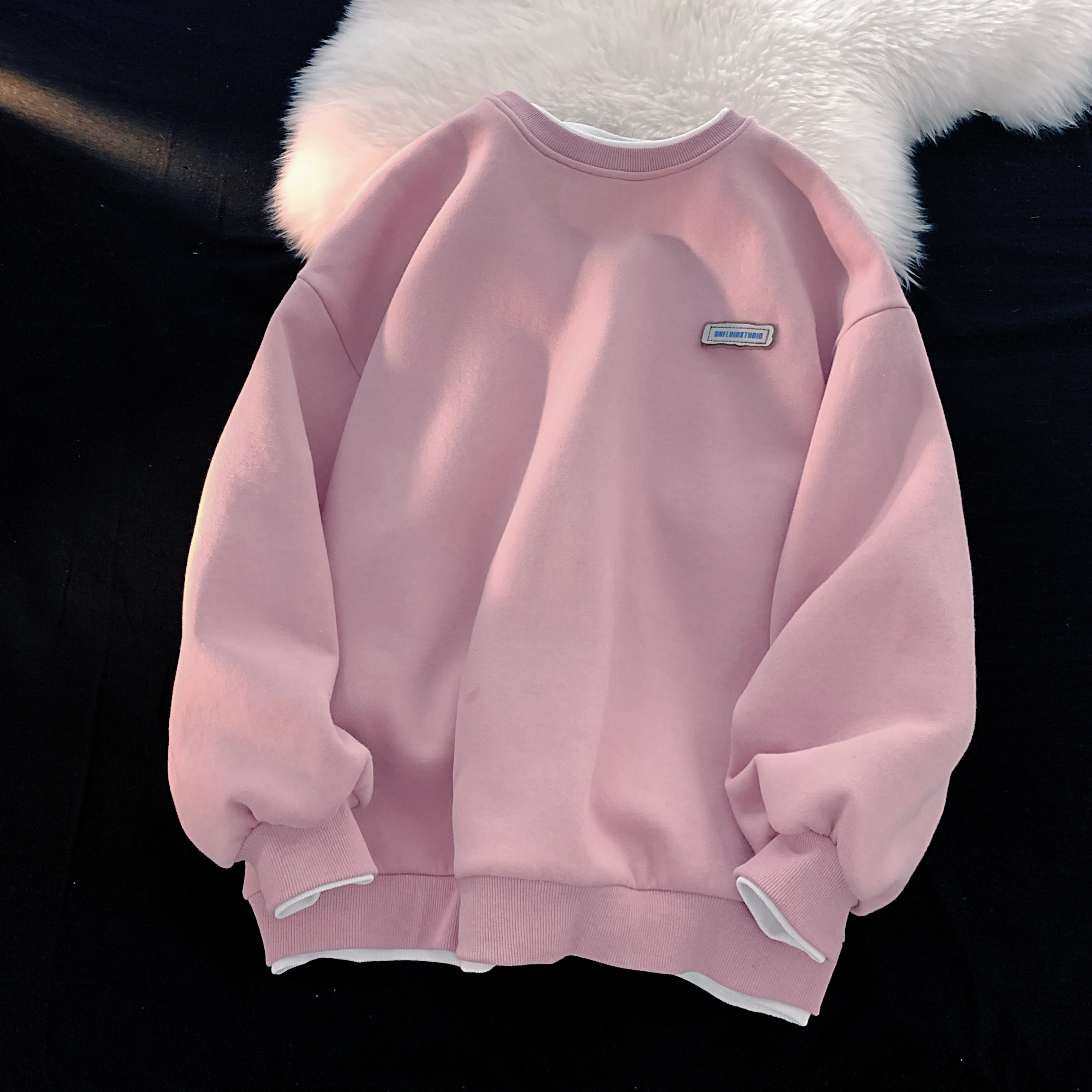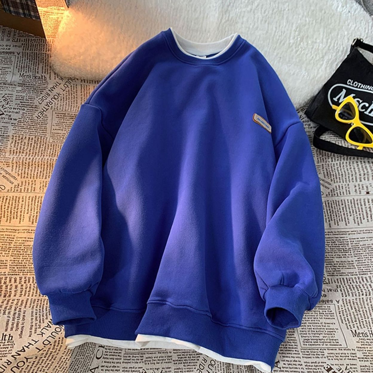 홍콩 스타일의 크루 넥 스웨터 남성과 여성의 봄과 가을 얇은 화이트 커플의 최고 가짜 투피스 오버 사이즈 긴팔 티셔츠