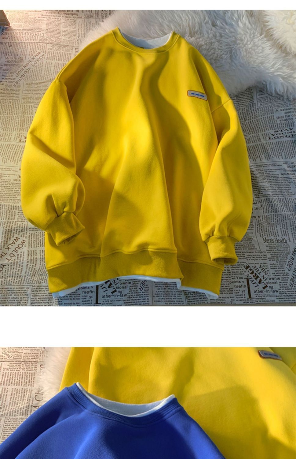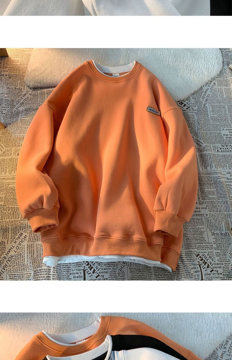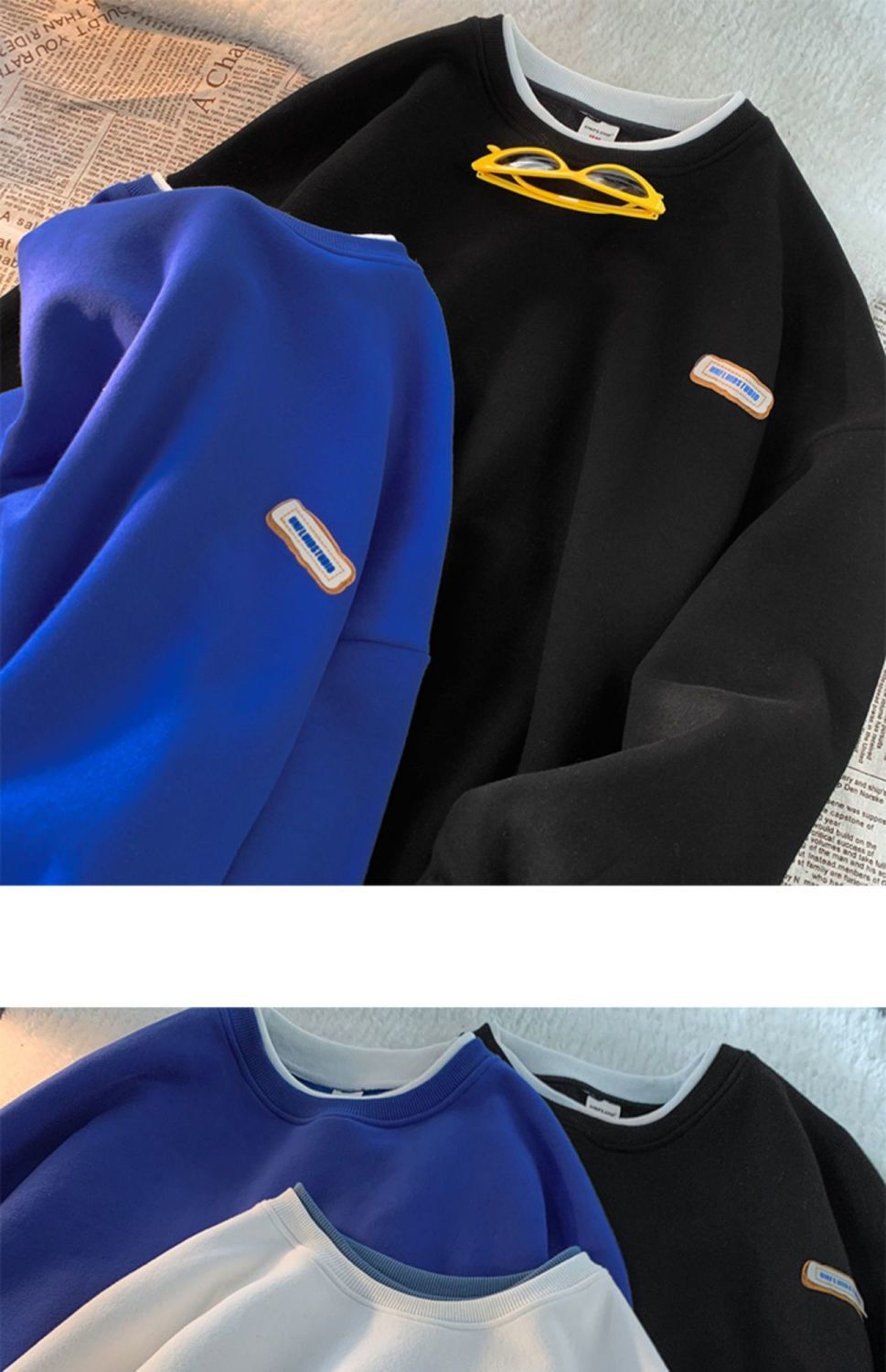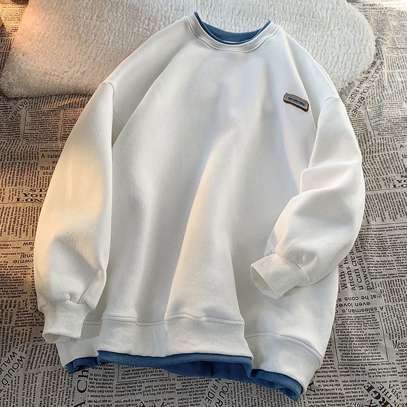 홍콩 스타일의 크루 넥 스웨터 남성과 여성의 봄과 가을 얇은 화이트 커플의 최고 가짜 투피스 오버 사이즈 긴팔 티셔츠스토어 가기
