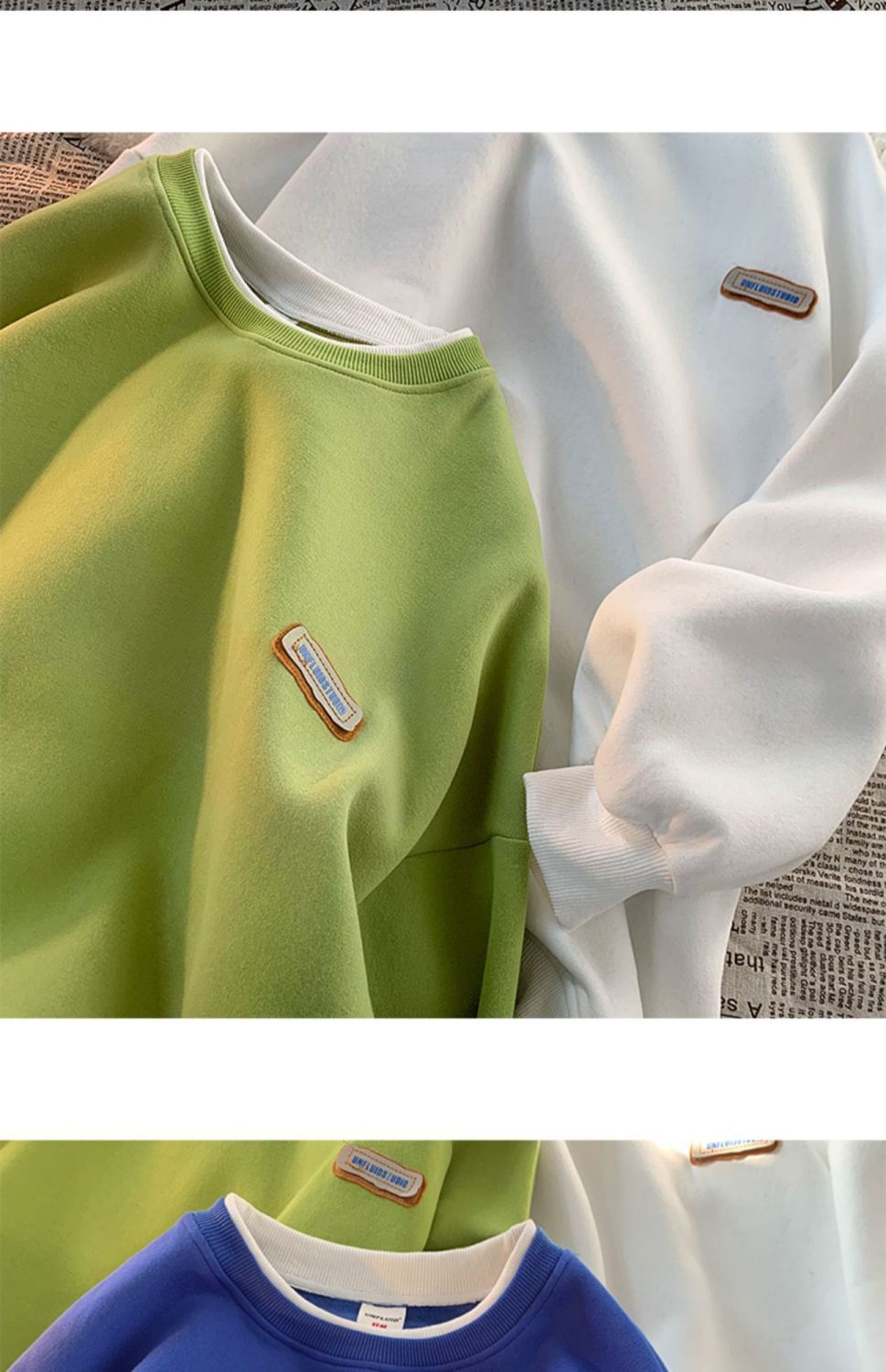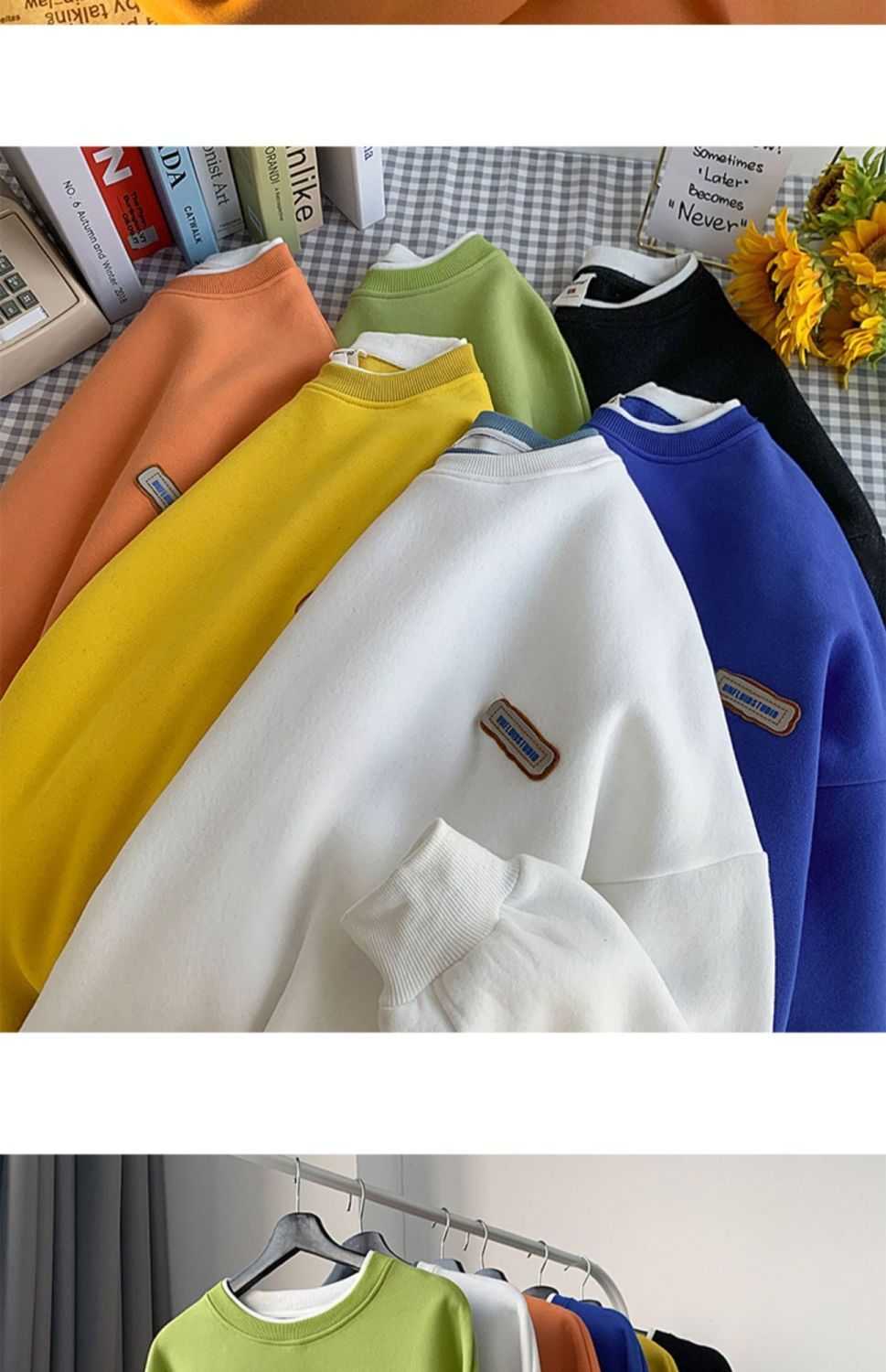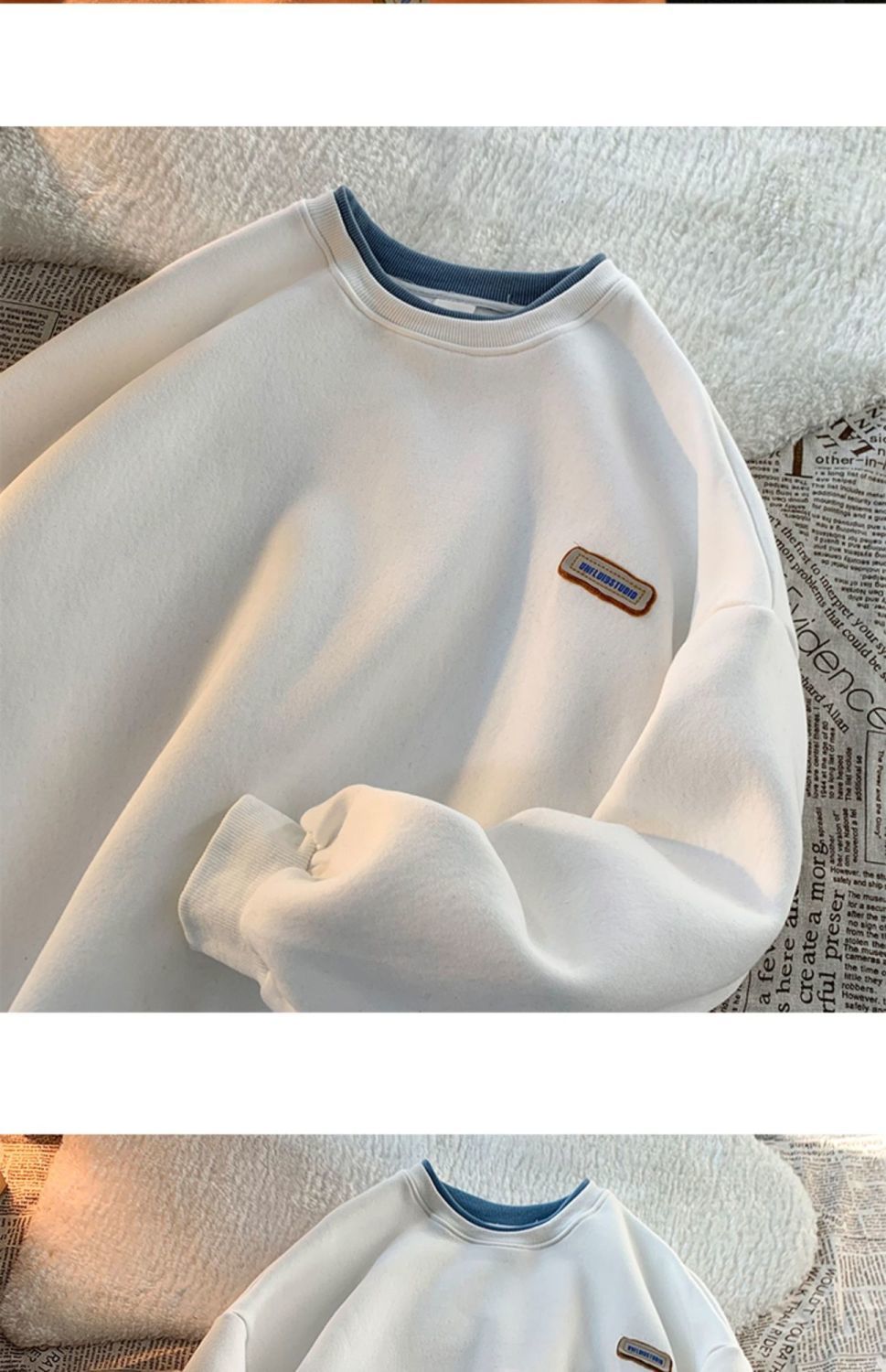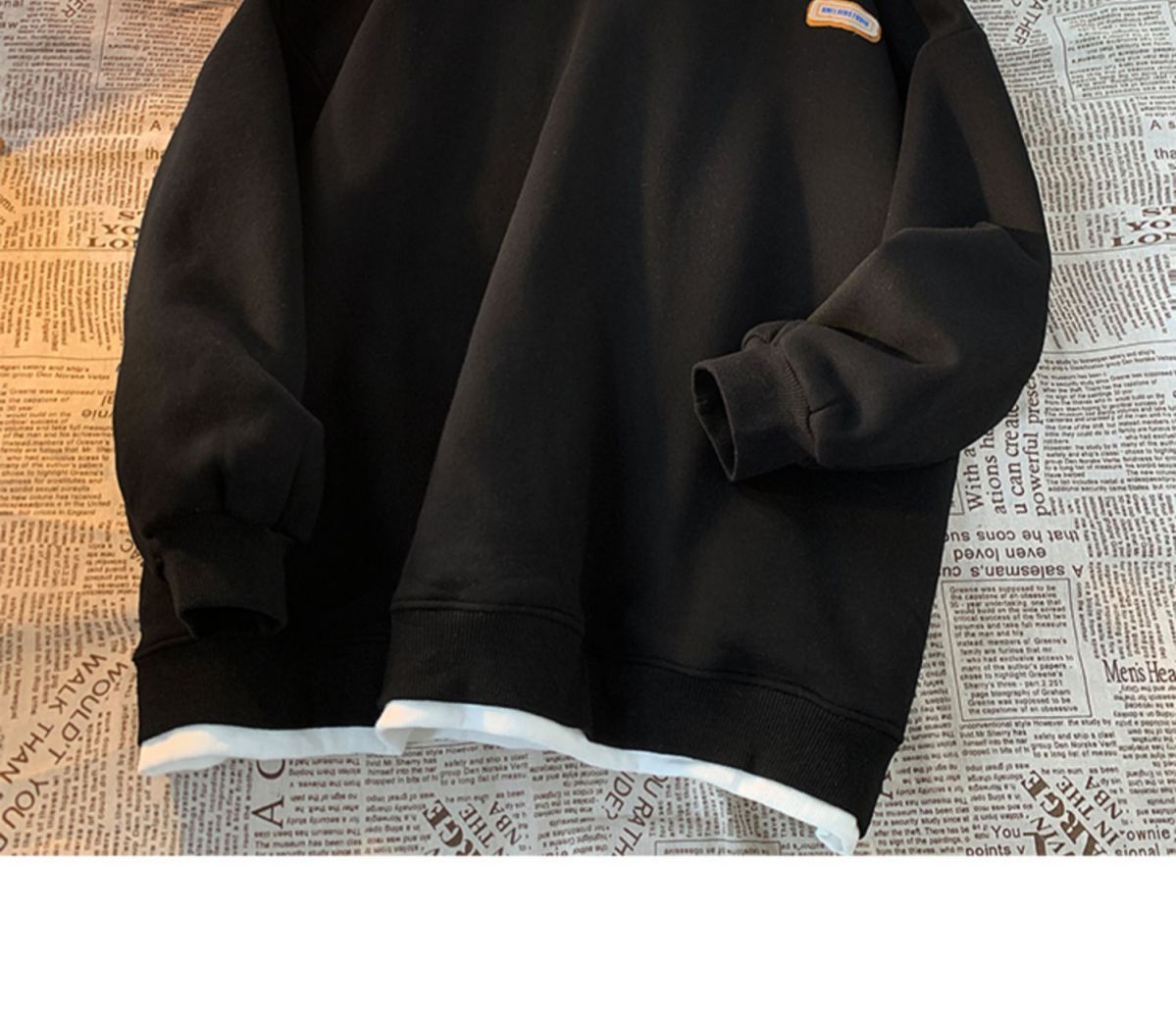홍콩 스타일의 크루 넥 스웨터 남성과 여성의 봄과 가을 얇은 화이트 커플의 최고 가짜 투피스 오버 사이즈 긴팔 티셔츠스토어 가기