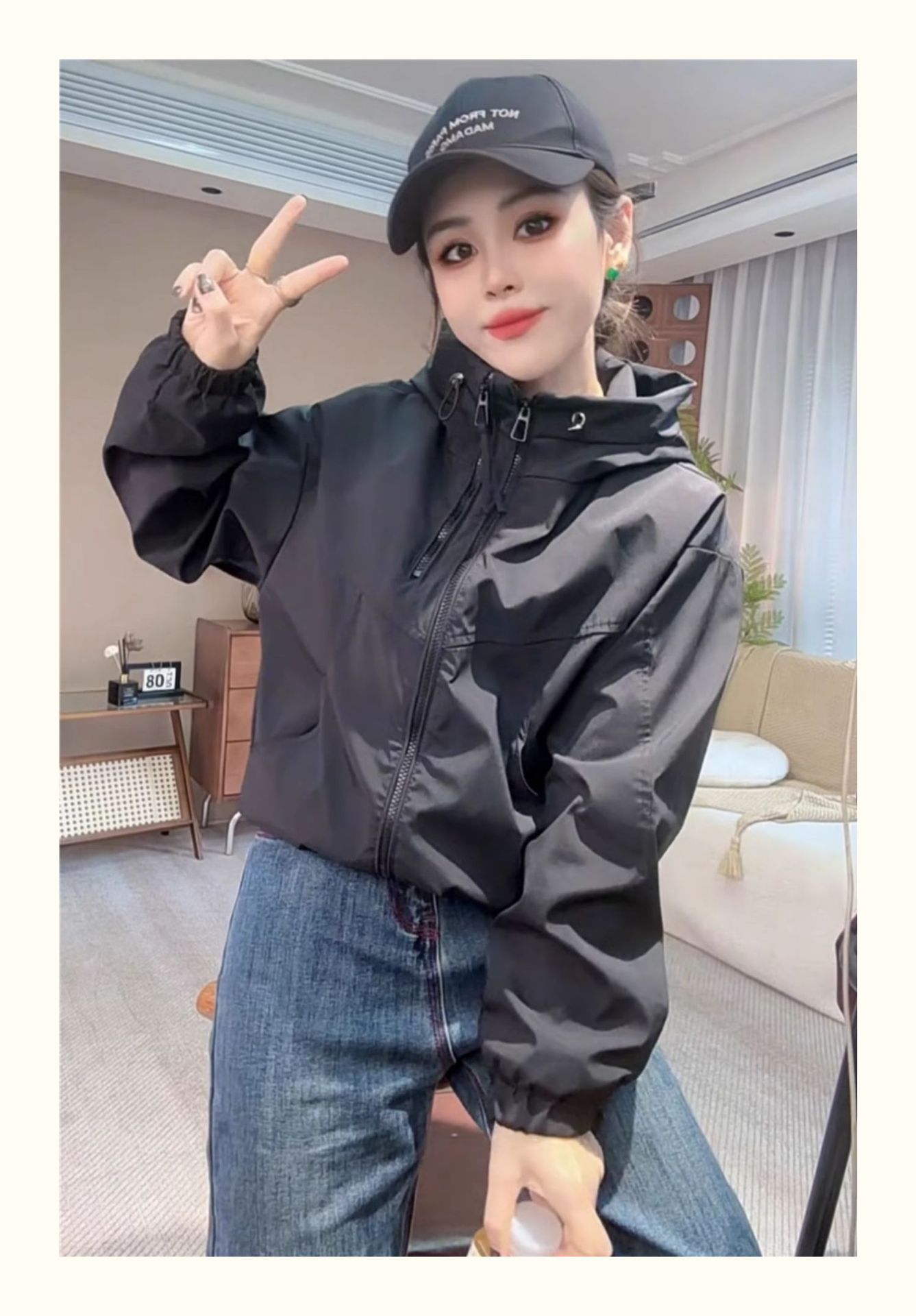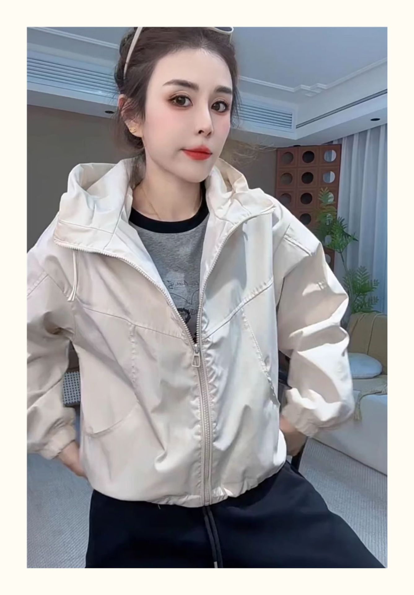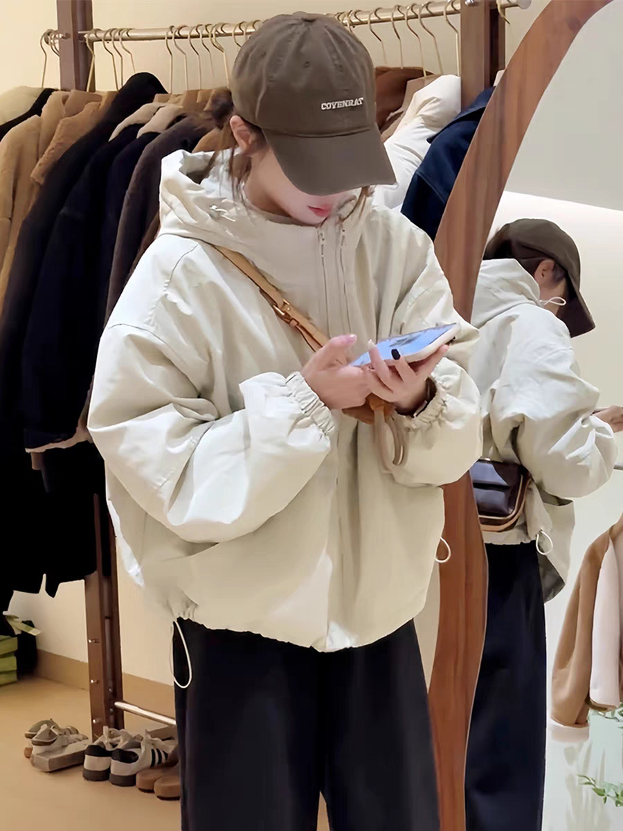 후드 충전 재킷 여자 2025 봄 새로운 한국 짧은 재킷 느슨한 캐주얼 슬림 핏스토어 가기