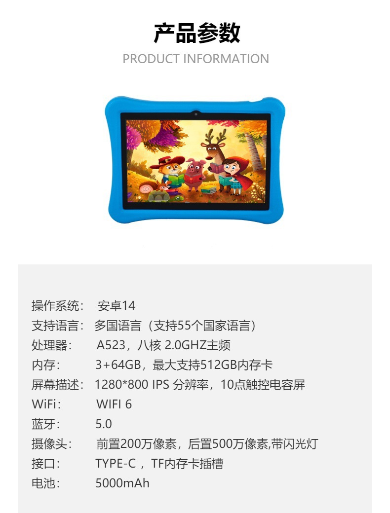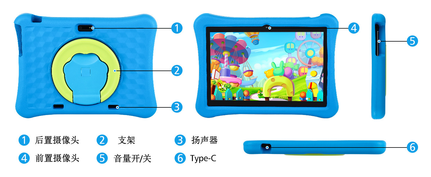10.1 인치 WIFI6 어린이 태블릿 8 핵 안드로이드 64G 학습 기계 부모 제어 도매 평면
