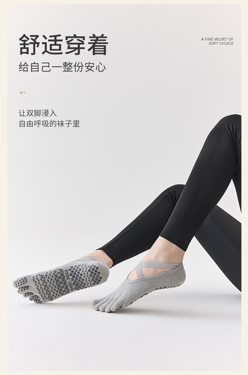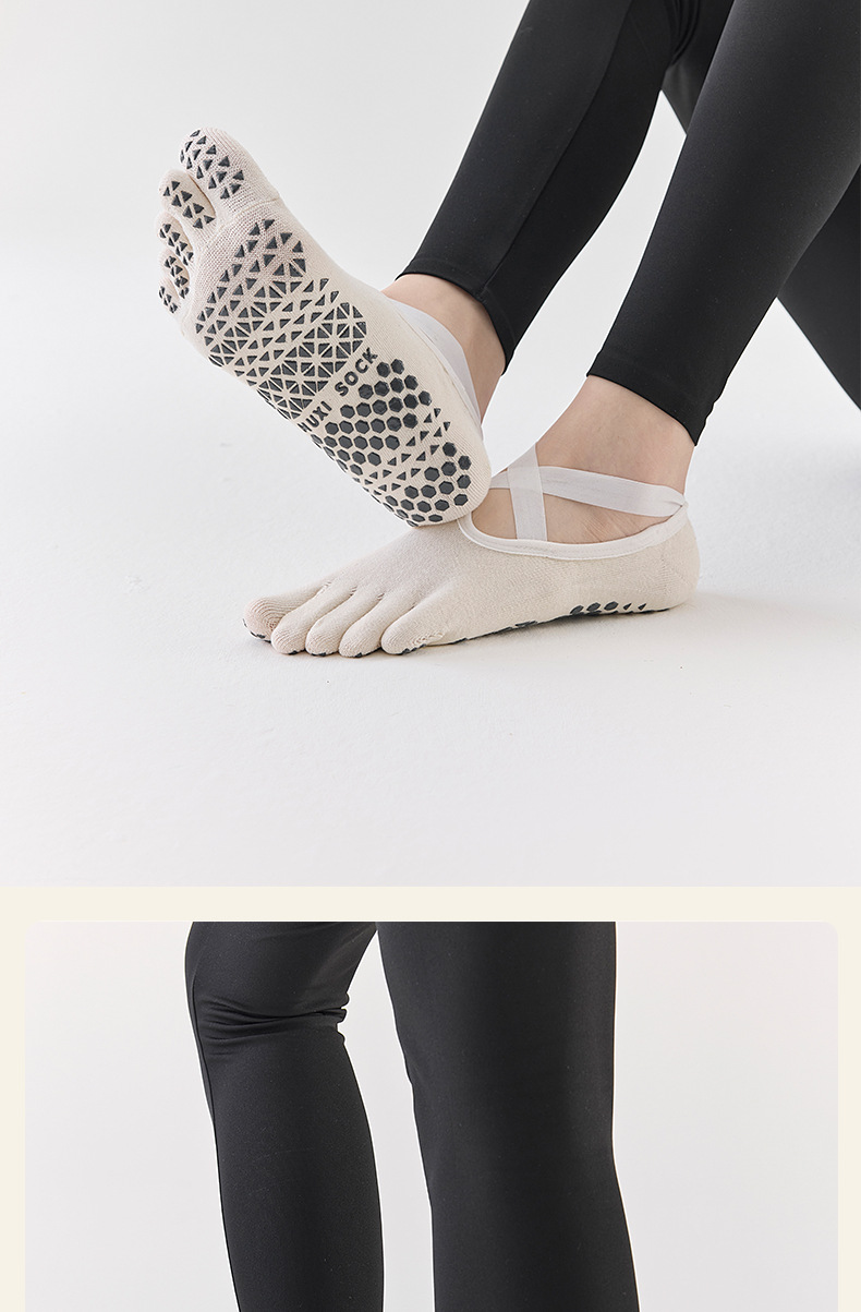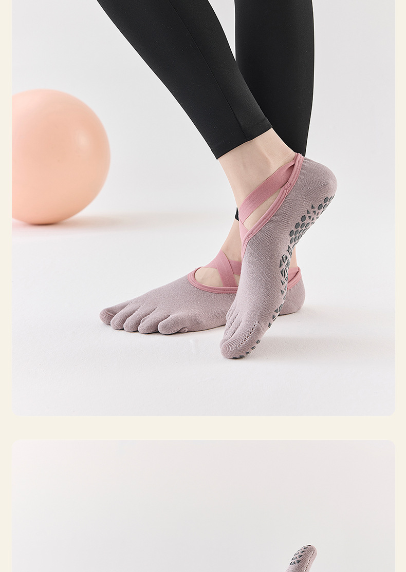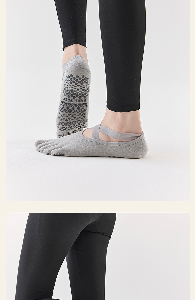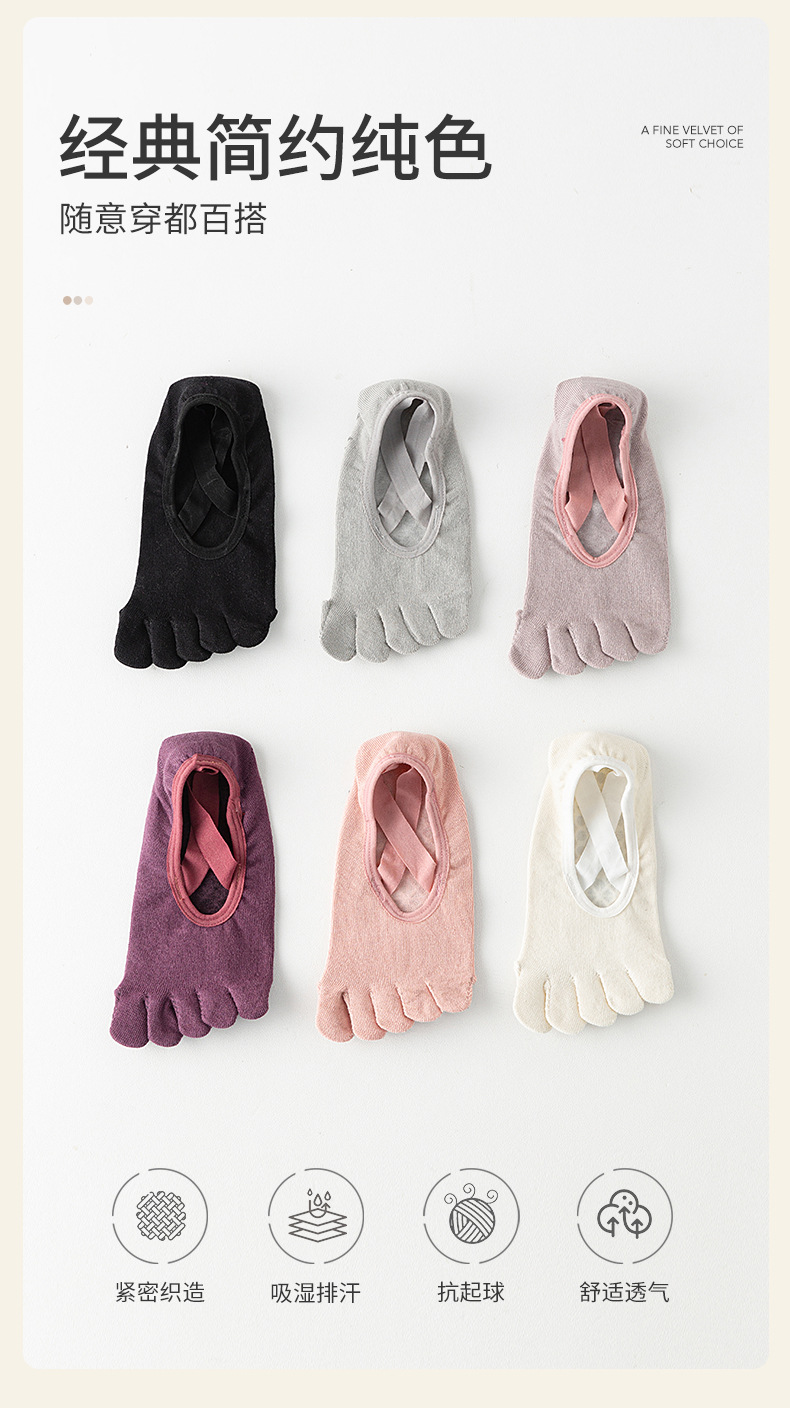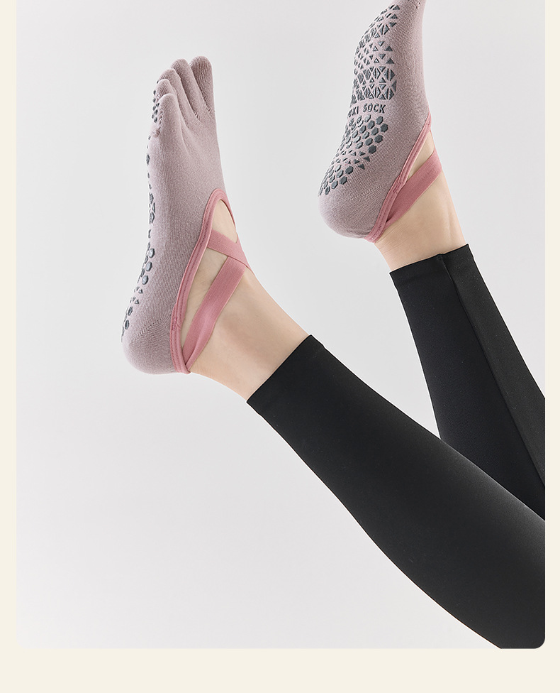 전문 미끄럼 방지 스포츠 양말 여성 요가 양말 보트 양말 크로스 스트랩 5 손가락 양말 실내 피트니스 필라테스 양말스토어 가기