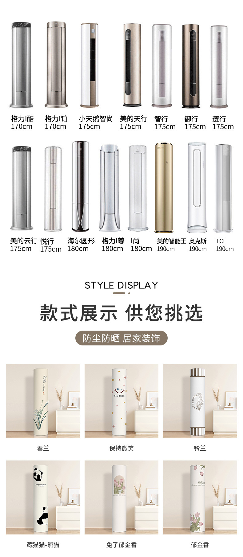 원통형 에어컨 커버 캐비닛 기계 보편적 인 부드러운 가죽 먼지 방지 아름다움 Haier Hisense Oaks 수직 먼지 커버 커버스토어 가기