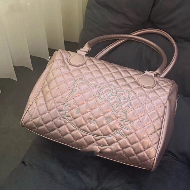 중간 고대 헬로 키티 토트 백 귀여운 달콤한 소녀 부드러운 가죽 단일 어깨 핸드백 여성의 대용량 여행 가방