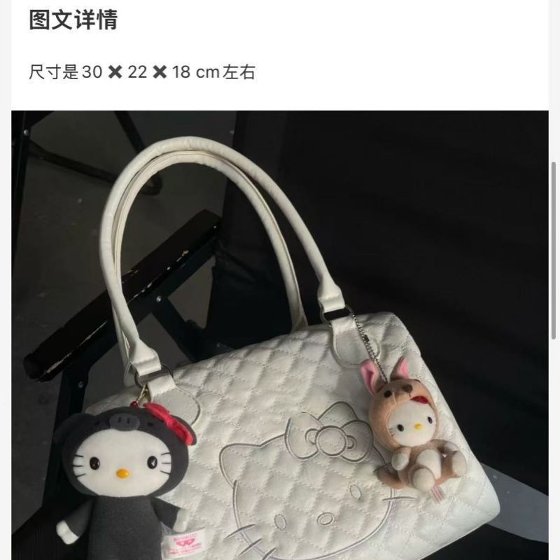 중간 고대 헬로 키티 토트 백 귀여운 달콤한 소녀 부드러운 가죽 단일 어깨 핸드백 여성의 대용량 여행 가방스토어 가기