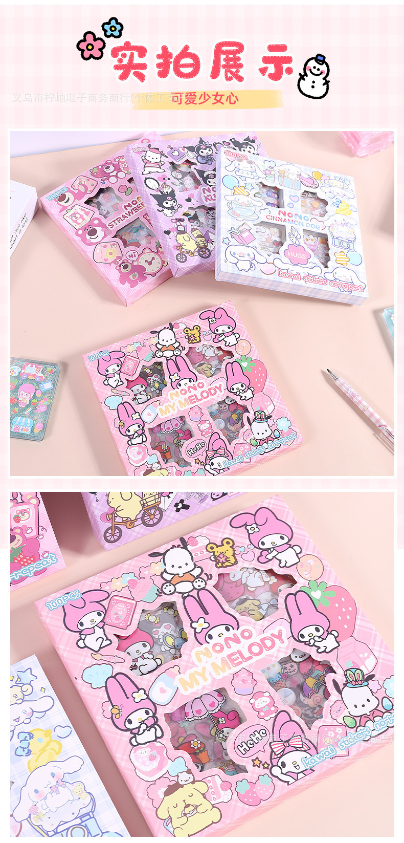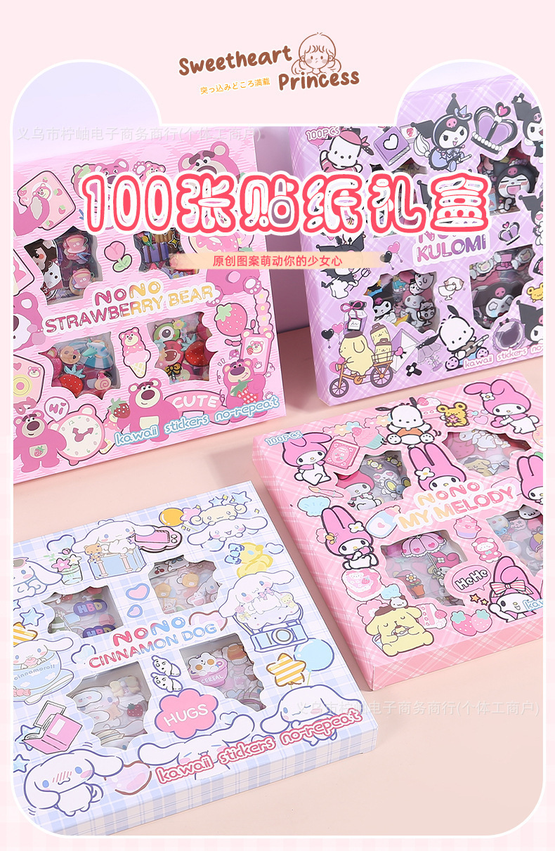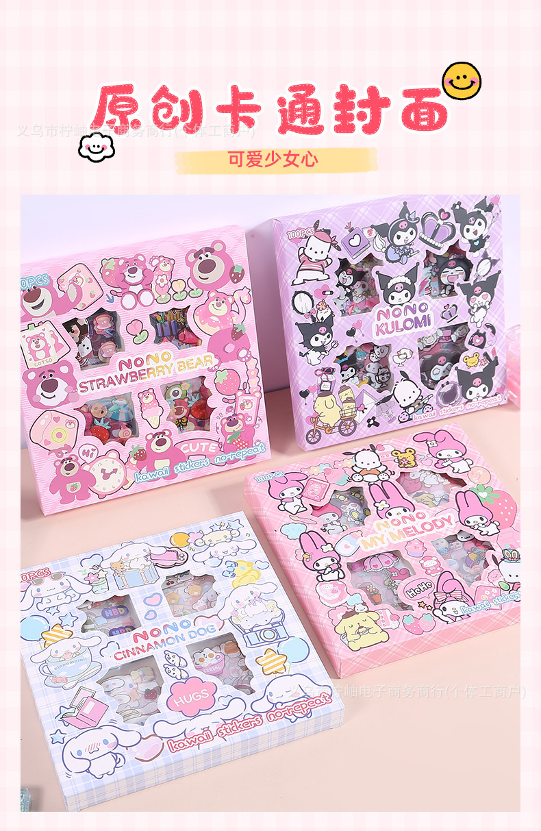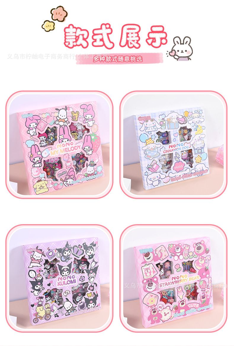 산리오 스티커 100장, 반복되지 않는 어린이 수제 드레스업 만화 스톨, 소녀 핸드북 선물 장식 스티커스토어 가기