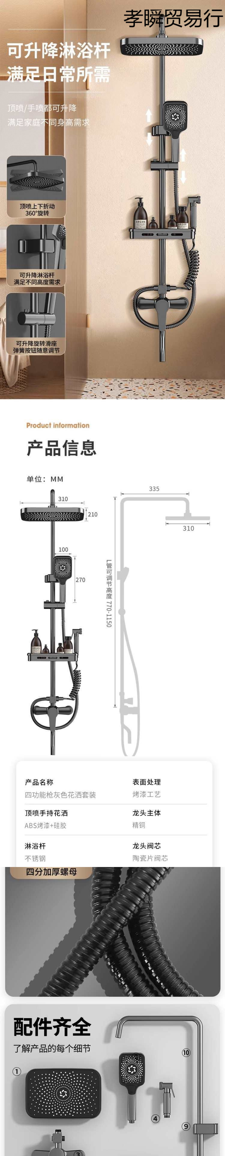 샤워 샤워 세트 가정용 욕실 가압 총 회색 구리 욕실 화장실 욕조 샤워 헤드