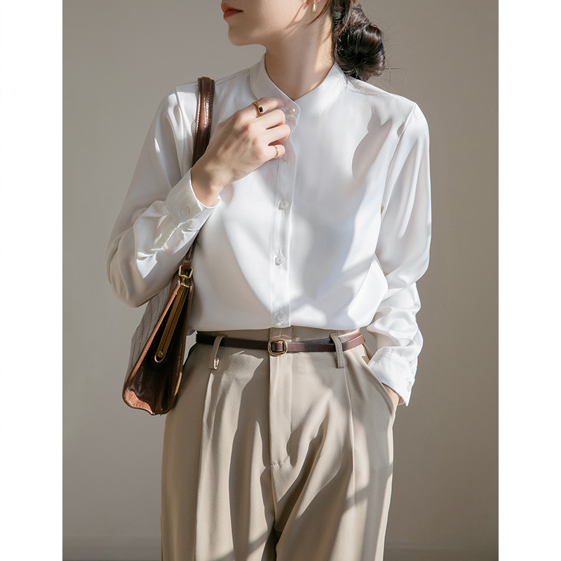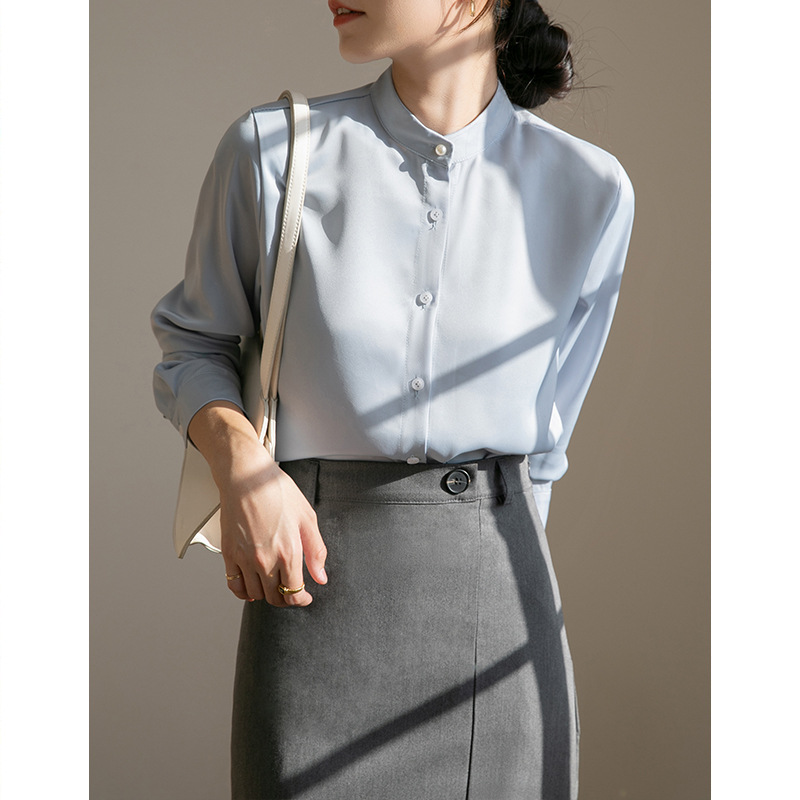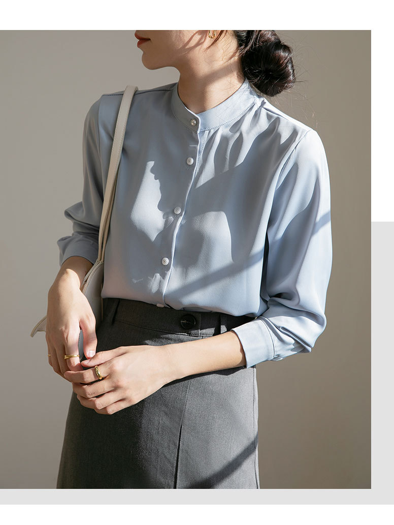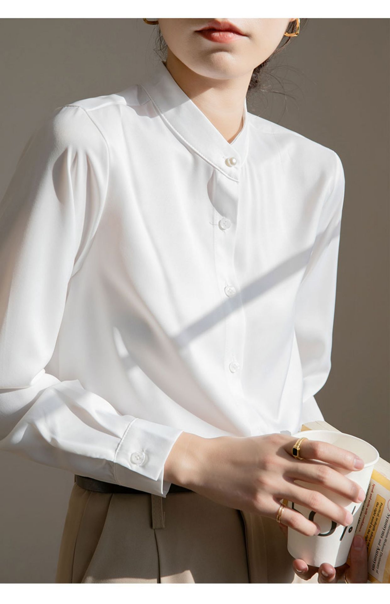 작은 칼라 셔츠 여성의 봄과 여름 아우터 우아한 연예인 올 매치 탑 긴팔 셔츠 전문 쉬폰 셔츠스토어 가기
