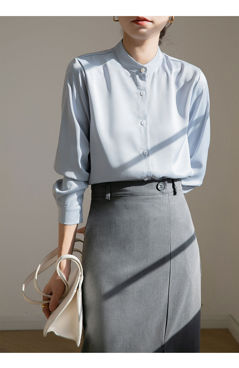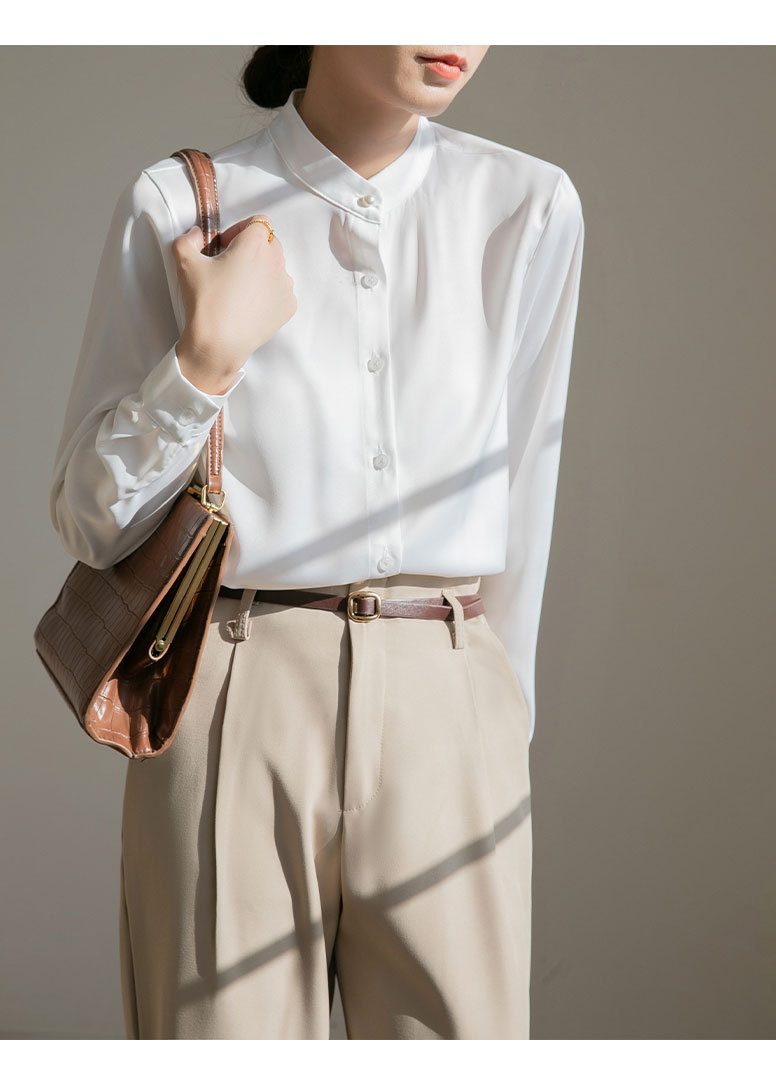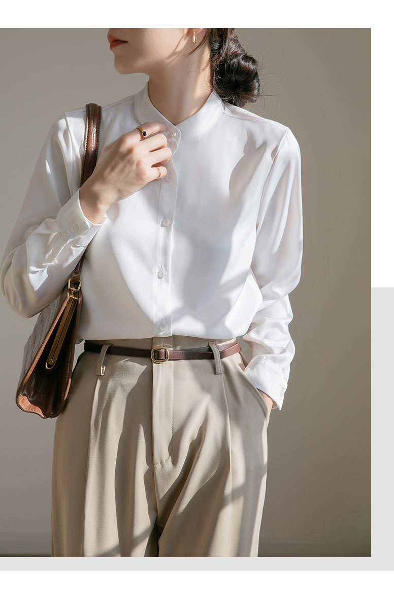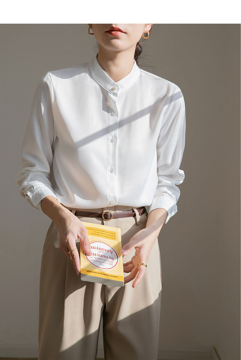작은 칼라 셔츠 여성의 봄과 여름 아우터 우아한 연예인 올 매치 탑 긴팔 셔츠 전문 쉬폰 셔츠스토어 가기
