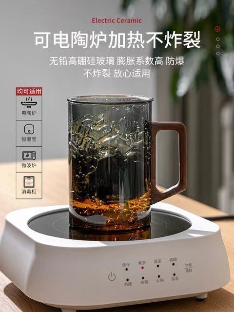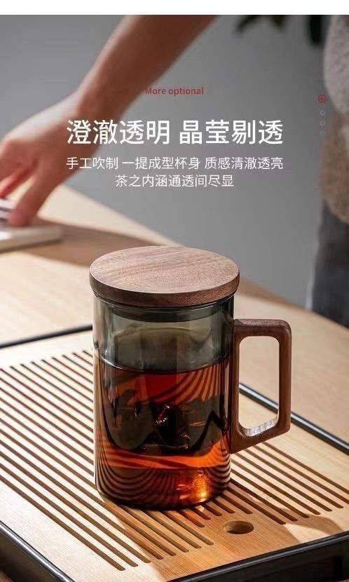티컵 차 물 분리 고급 컵 유리 관산 워터 컵 일본식 비즈니스 컵 호두 핸들 오피스 컵