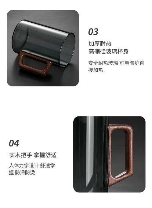 티컵 차 물 분리 고급 컵 유리 관산 워터 컵 일본식 비즈니스 컵 호두 핸들 오피스 컵스토어 가기