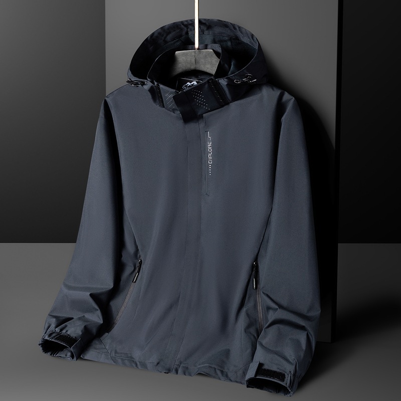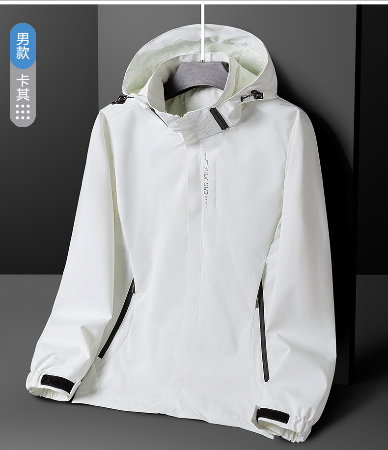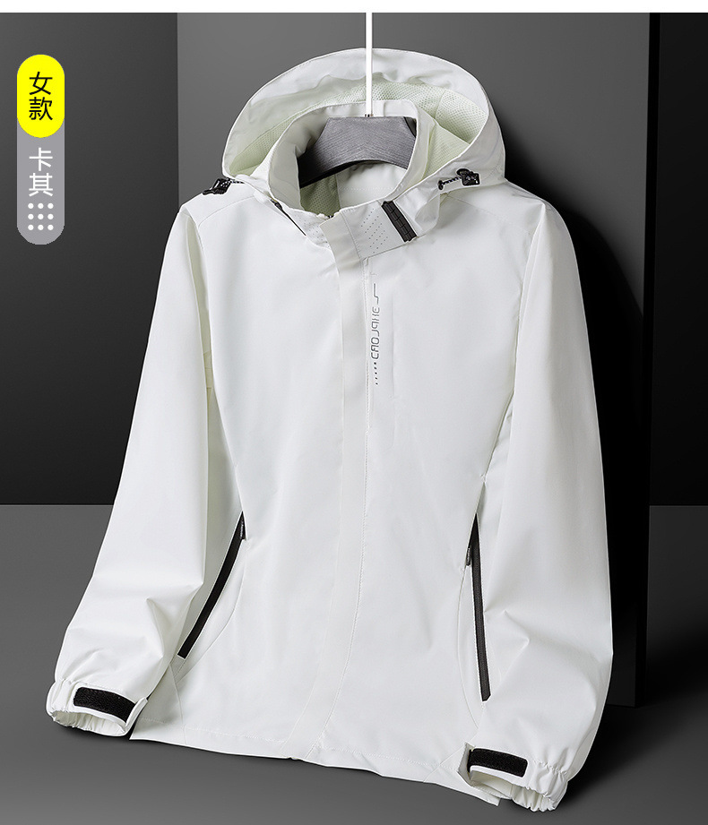 야외 러시 옷 여성의 얇은 남성과 여성의 느슨한 플러스 사이즈 재킷 방수 방풍 싱글 재킷 모자 이동식