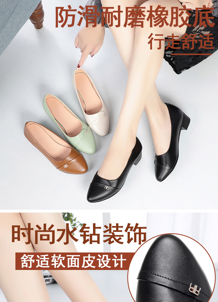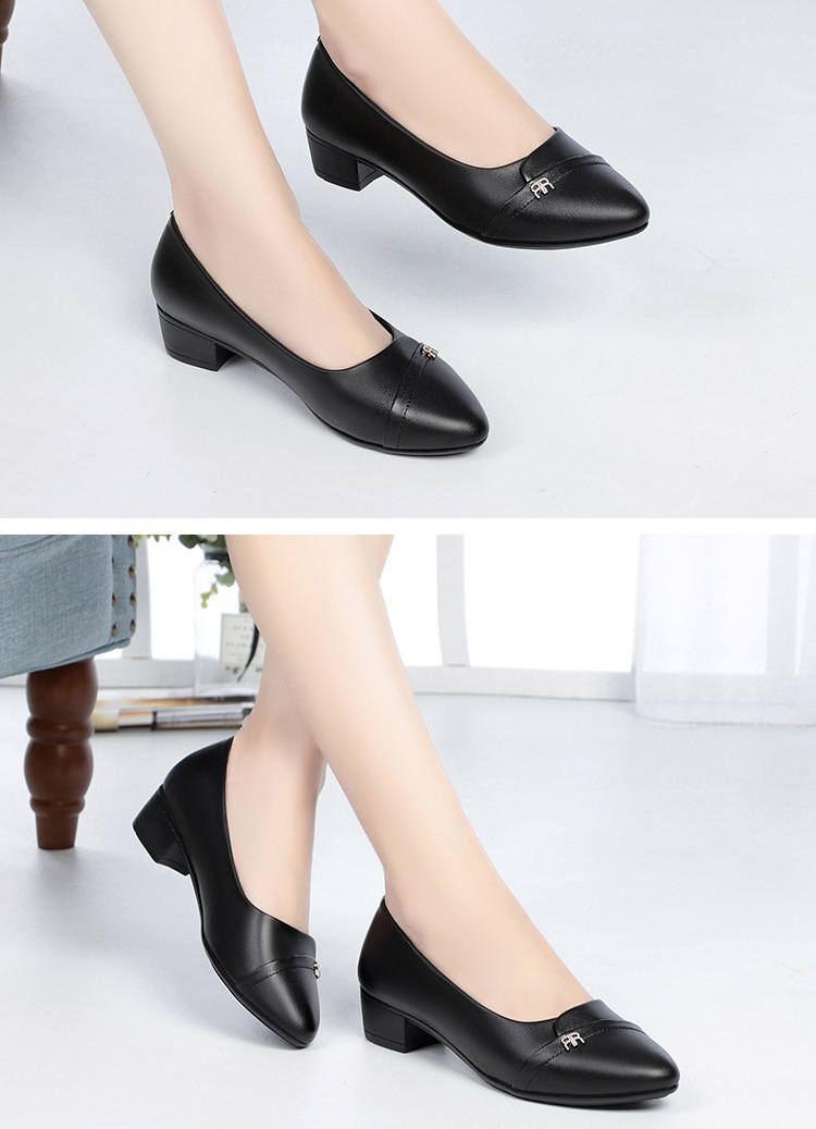 여성용 가죽 신발 중발 여성용 싱글 레이어 신발 두꺼운 검은 색 작업 신발 소프트 단독 미끄럼 방지 중년 플러스 사이즈 중년 엄마 신발스토어 가기