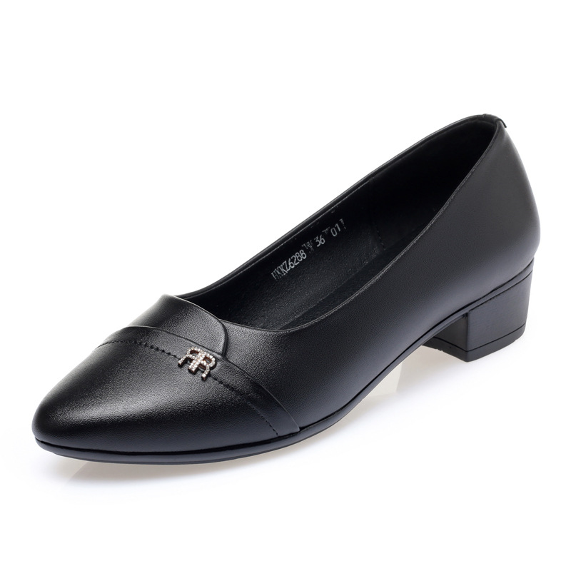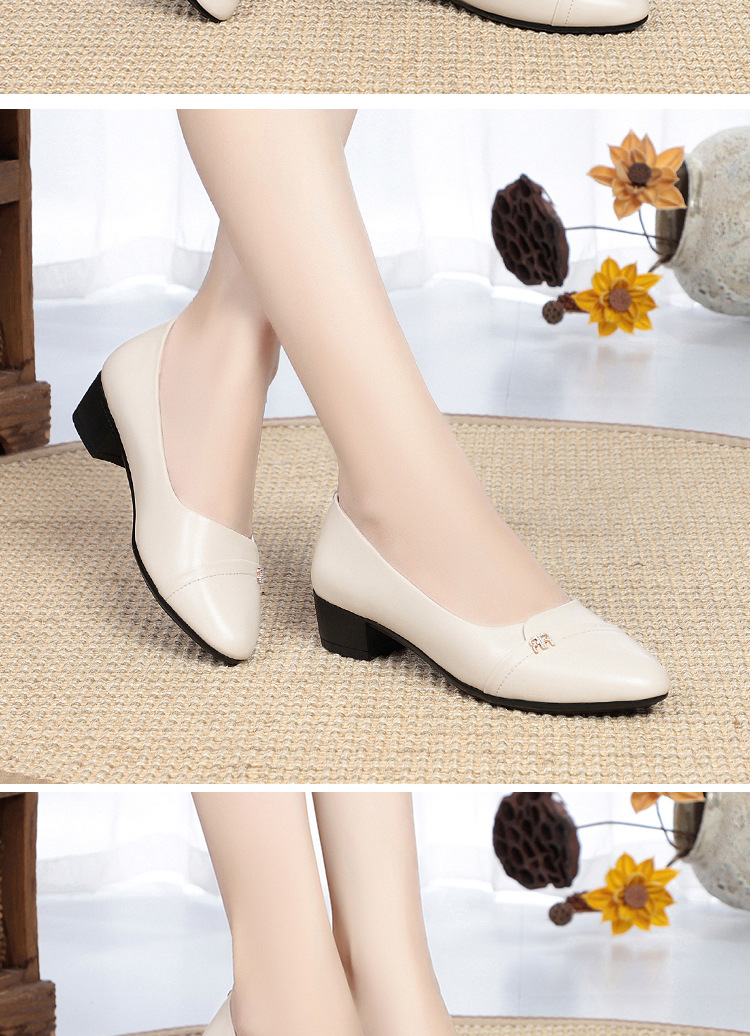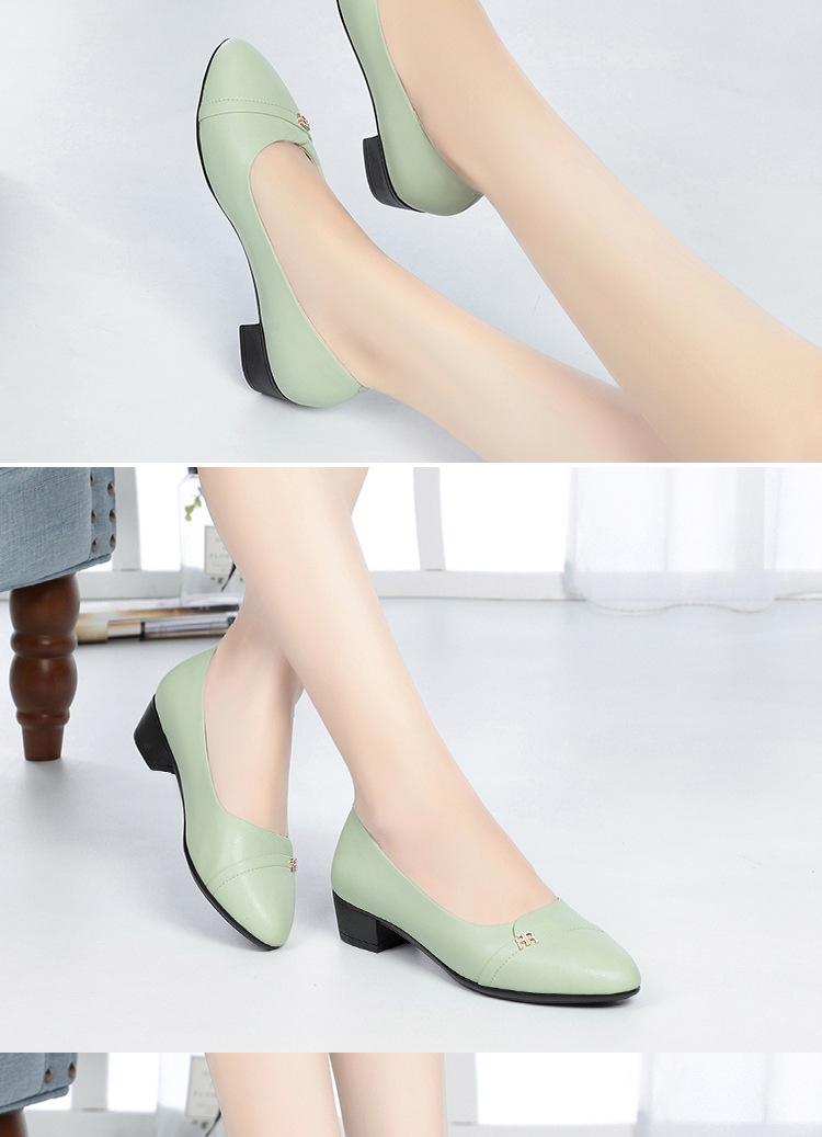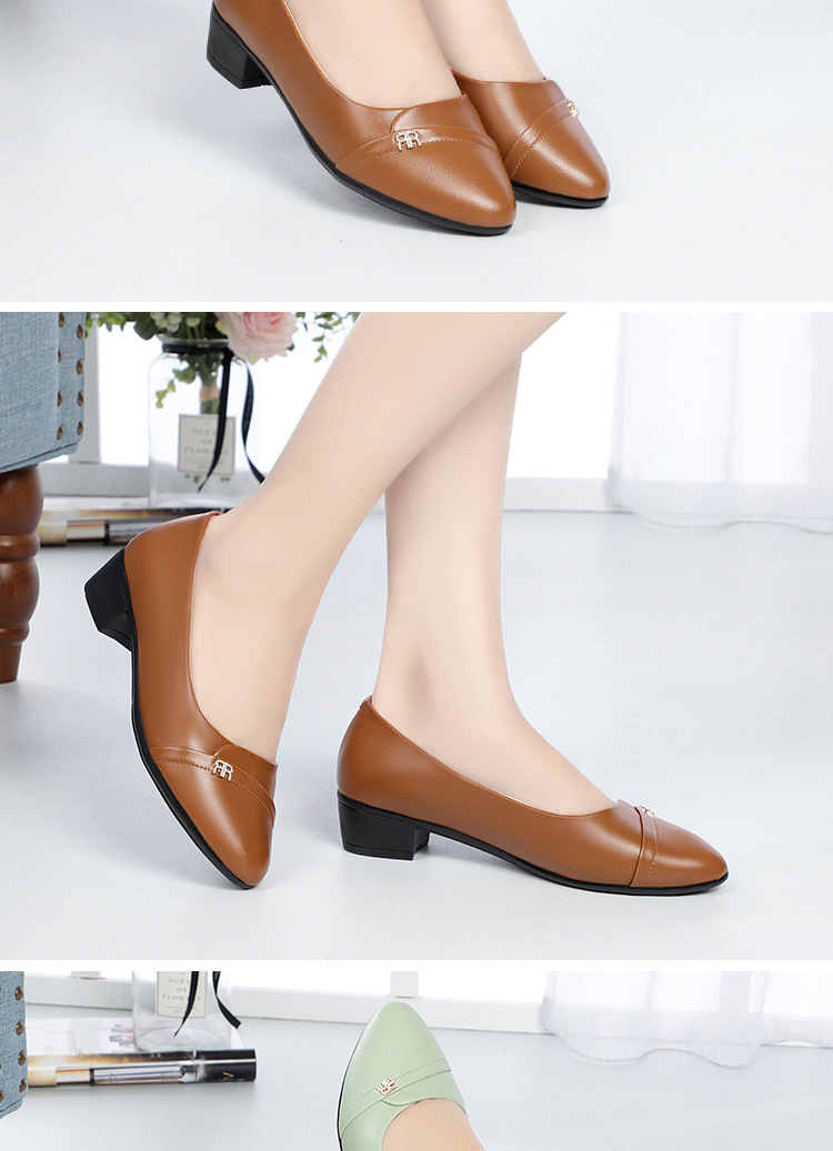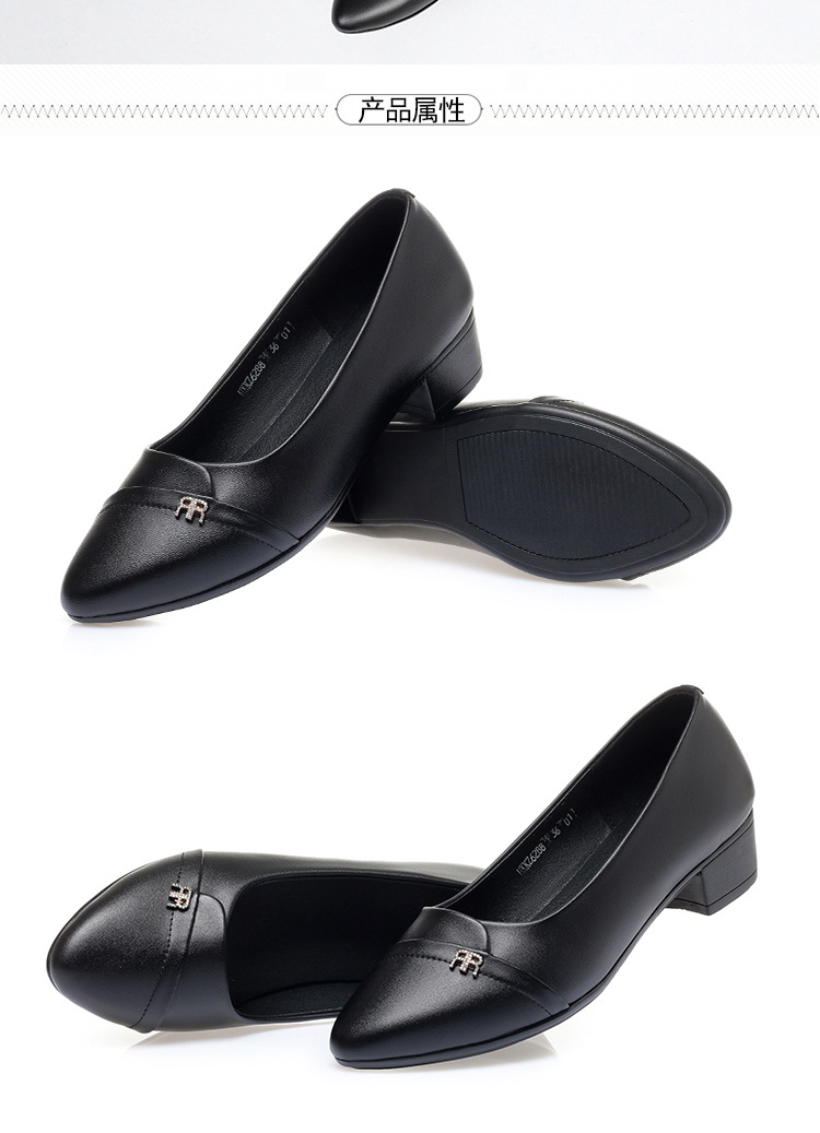 여성용 가죽 신발 중발 여성용 싱글 레이어 신발 두꺼운 검은 색 작업 신발 소프트 단독 미끄럼 방지 중년 플러스 사이즈 중년 엄마 신발