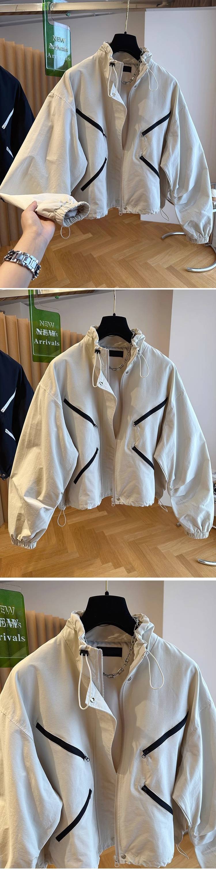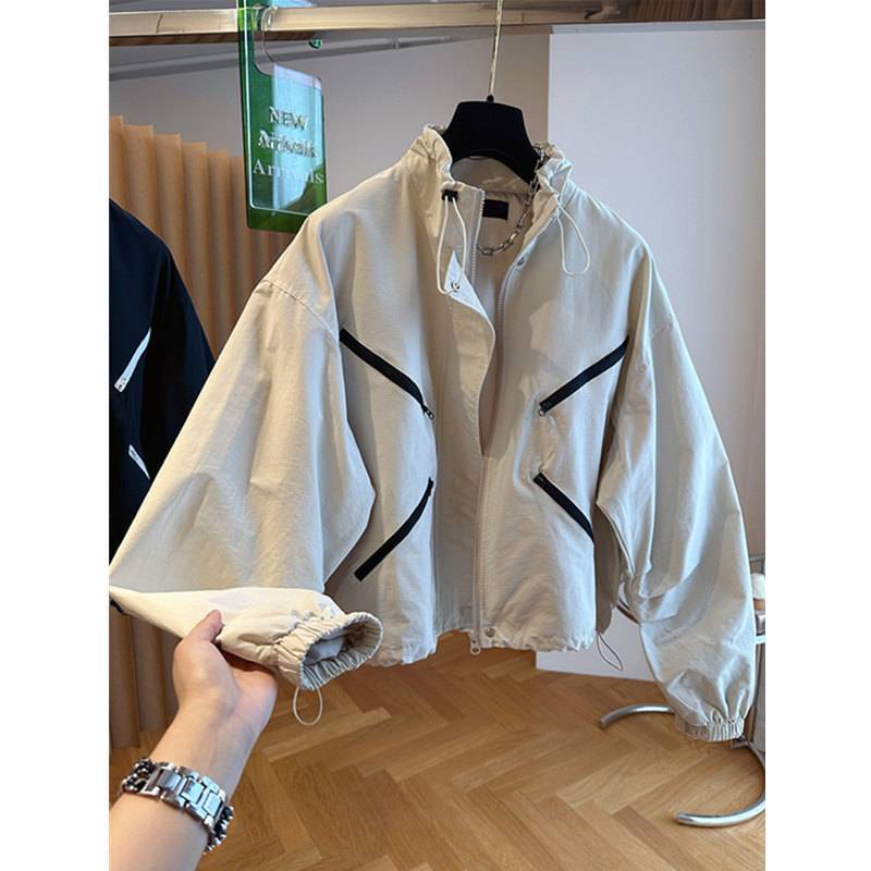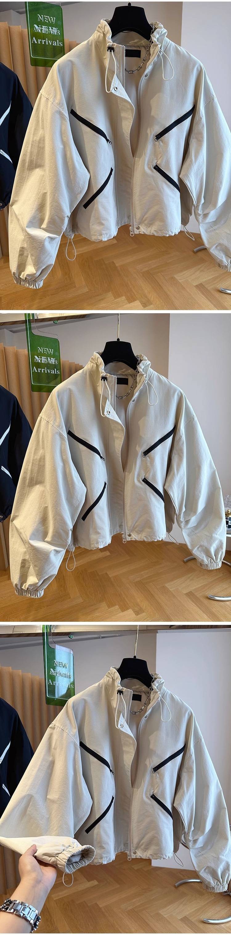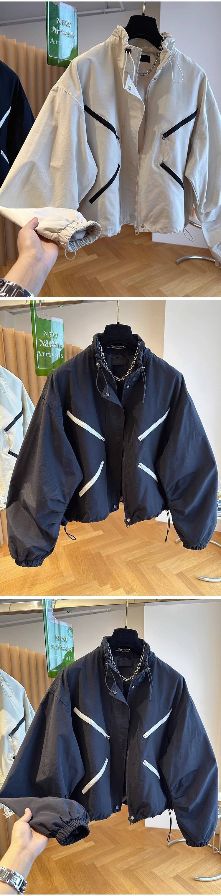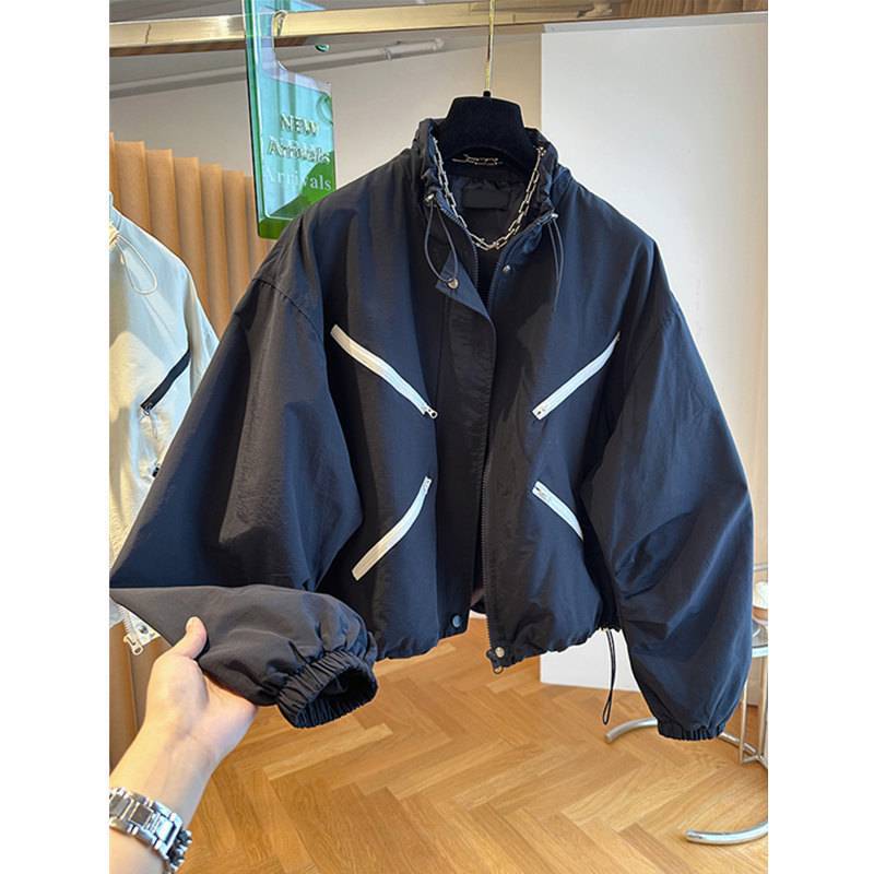 한국 하이 엔드 디자인 감각 틈새 느슨한 대조 컬러 바느질 짧은 코트 재킷 여성의 봄 봄 봄 재킷스토어 가기