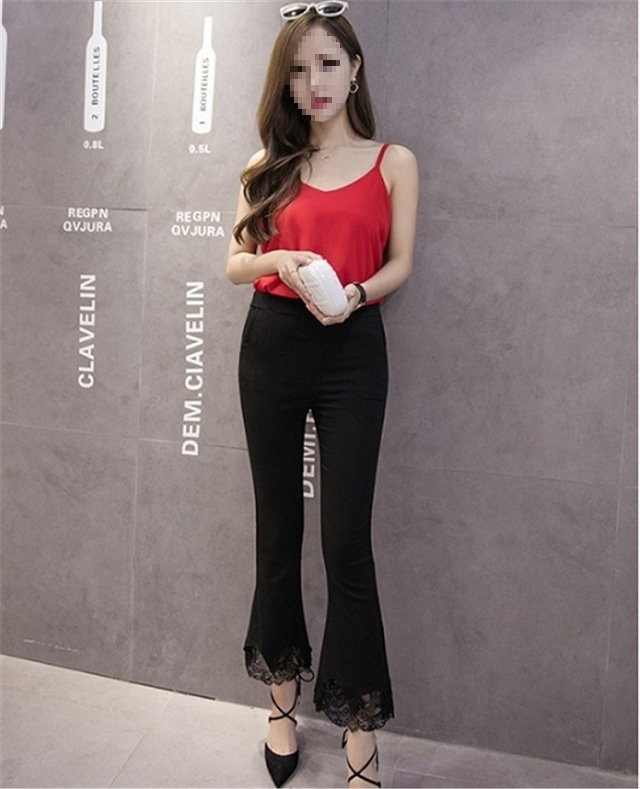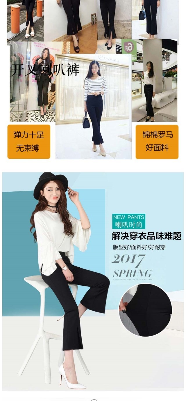 봄과 여름 높은 허리 마이크로 플레어 바지 여성용 바지 슬림 슬림핏 자른 바지 분할 캐주얼 바지 웨스턴 바지 넓은 다리 바지 여성스토어 가기