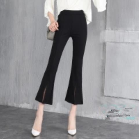봄과 여름 높은 허리 마이크로 플레어 바지 여성용 바지 슬림 슬림핏 자른 바지 분할 캐주얼 바지 웨스턴 바지 넓은 다리 바지 여성