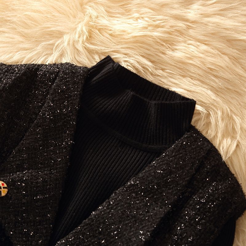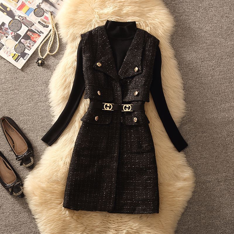 • 검은색 조끼 + 스웨터 [투피스 세트]