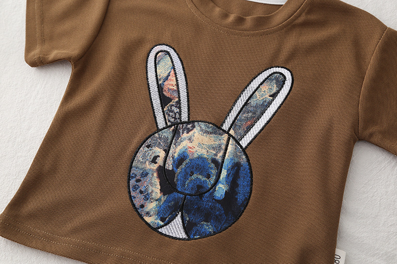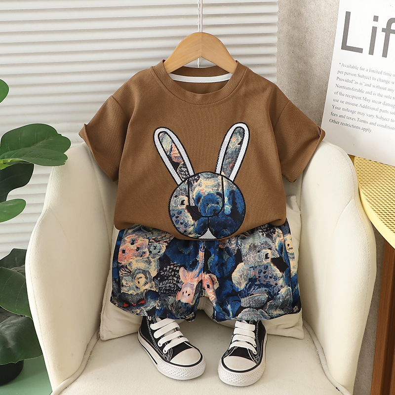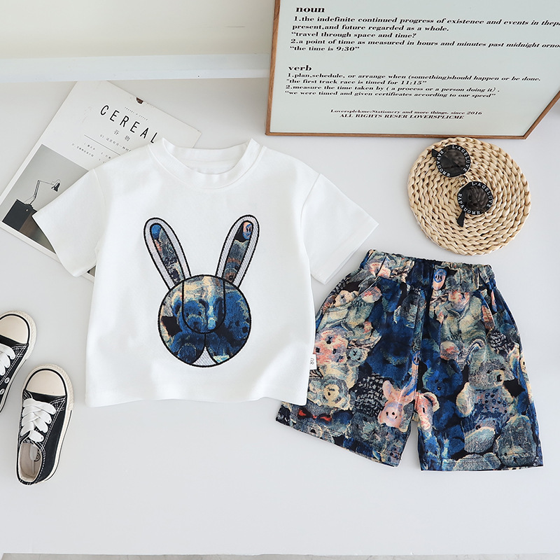 어린이 만화 토끼 반팔 투피스 세트 2025 여름 새 소년과 소녀 아기 옷 어린이 캐주얼 여름 세트