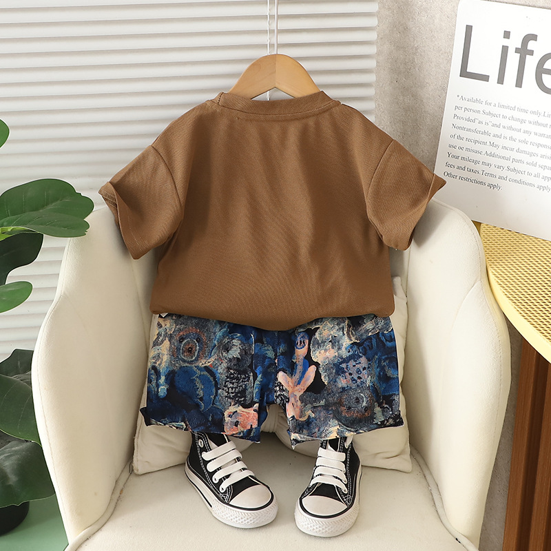 어린이 만화 토끼 반팔 투피스 세트 2025 여름 새 소년과 소녀 아기 옷 어린이 캐주얼 여름 세트스토어 가기