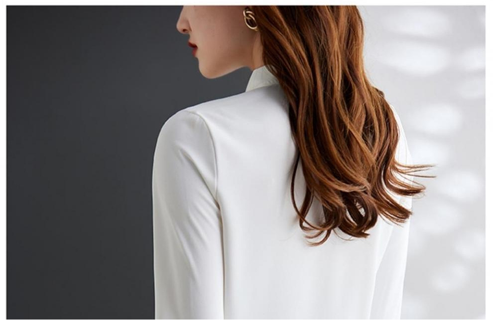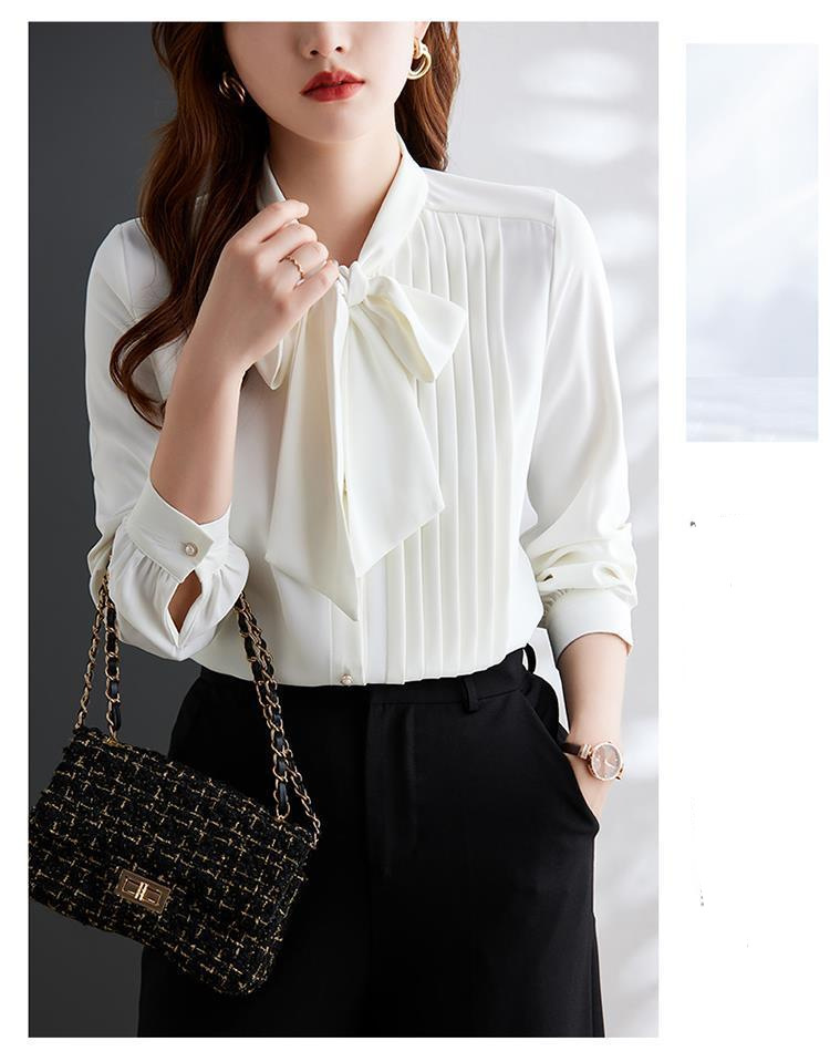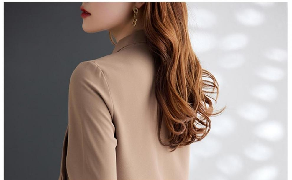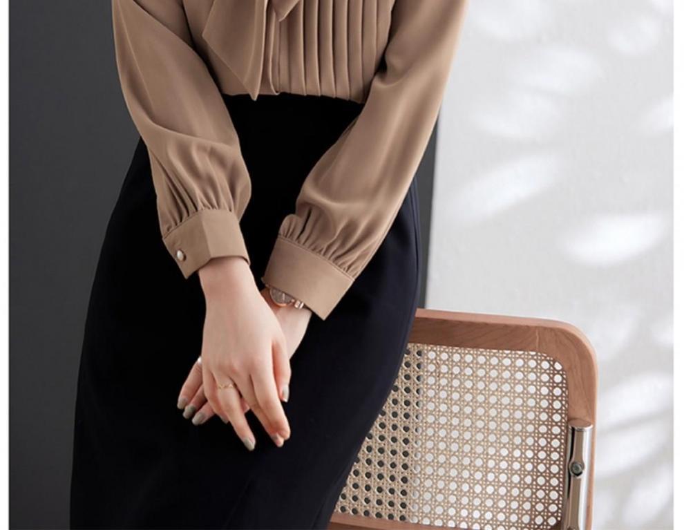 라이트 브라운 레이스 업 쉬폰 긴팔 셔츠 여성용 활 칼라 불규칙한 디자인 2025 새로운 스타일 패션스토어 가기