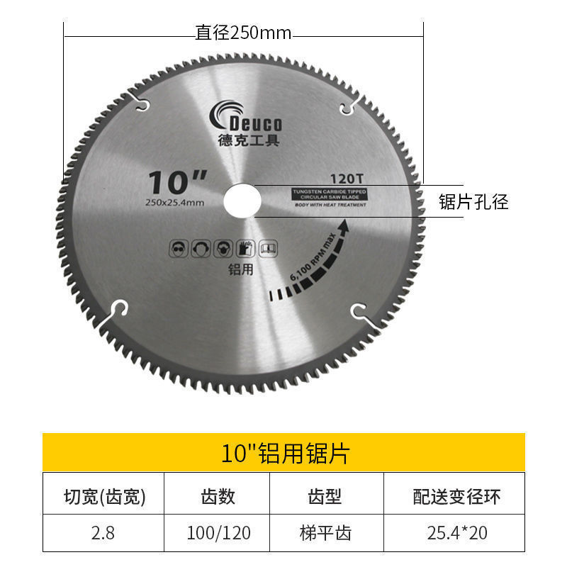 더크 알루미늄 합금 톱날 4 인치 7 인치 10 인치 120 이빨 알루미늄 프로파일 절단 블레이드 알루미늄 절단 톱날 알루미늄 원형 톱날스토어 가기