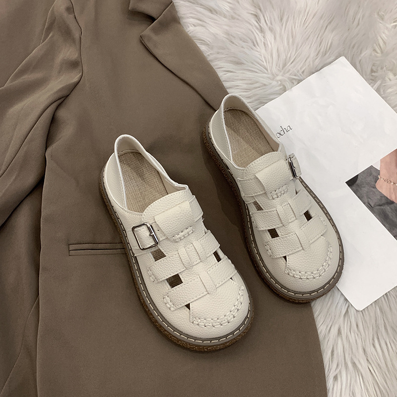 인터넷 Celebrous Baotou Sandals 여자 2025 년 여름 새로운 모리 스타일 올 매치 투웨어 스커트 두꺼운 밑창 로마 하프 슬리퍼