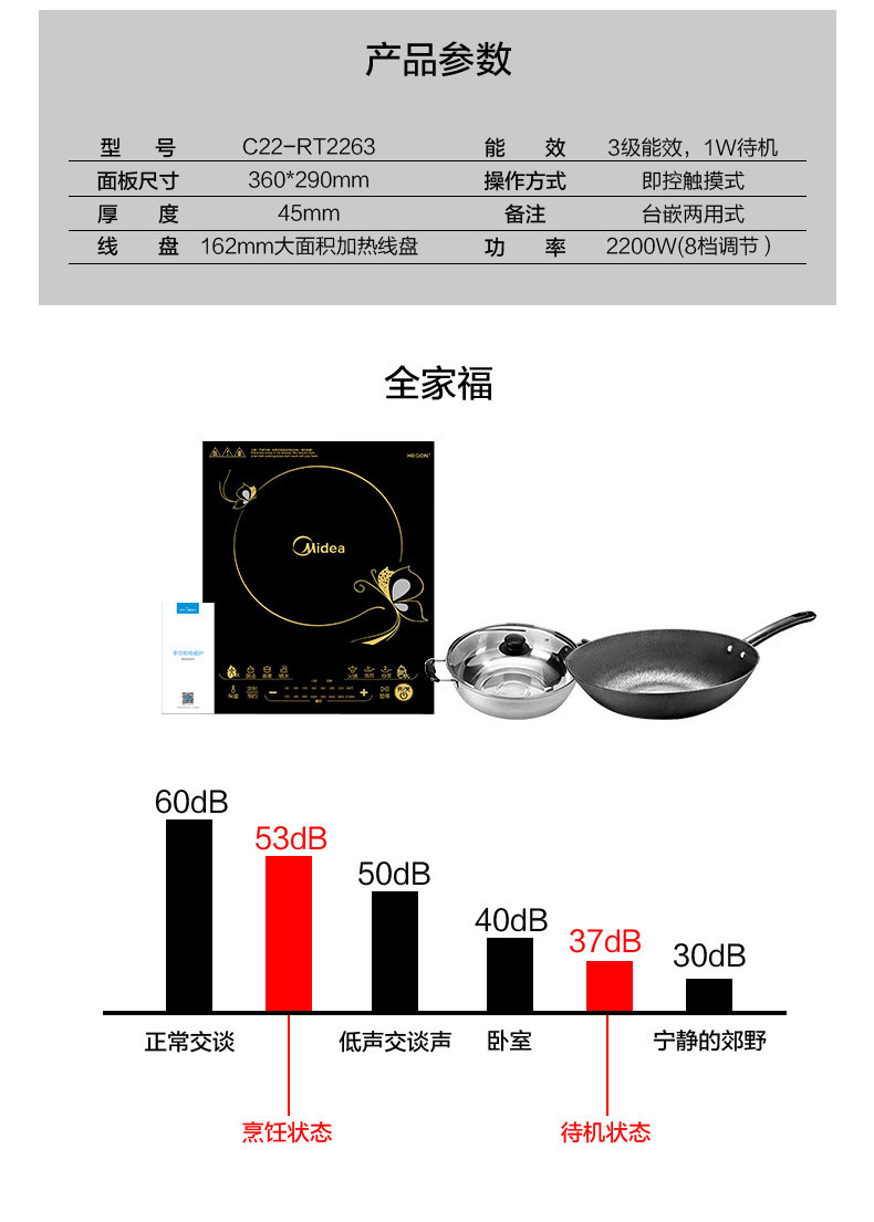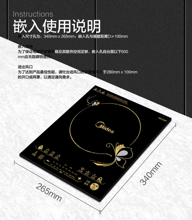 Midea 유도 밥솥 임베디드 2200w 가정용 바이스 이중 목적 요리 터치 스크린 유도 밥솥 C22-RT2263스토어 가기