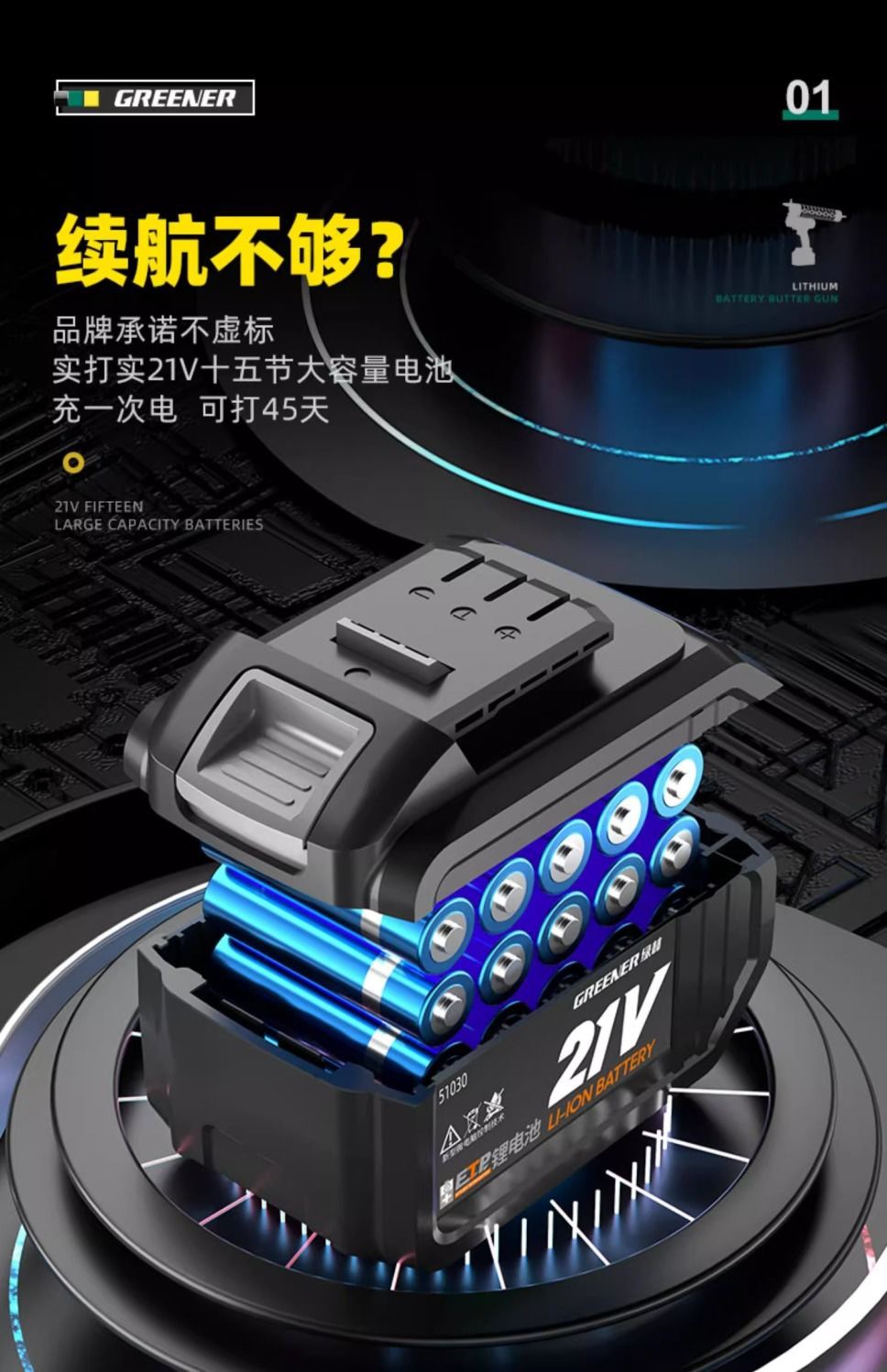• 산업용 모델 [15셀 배터리 수명 킹 스마트 리튬 배터리*1] 배럴 겸용