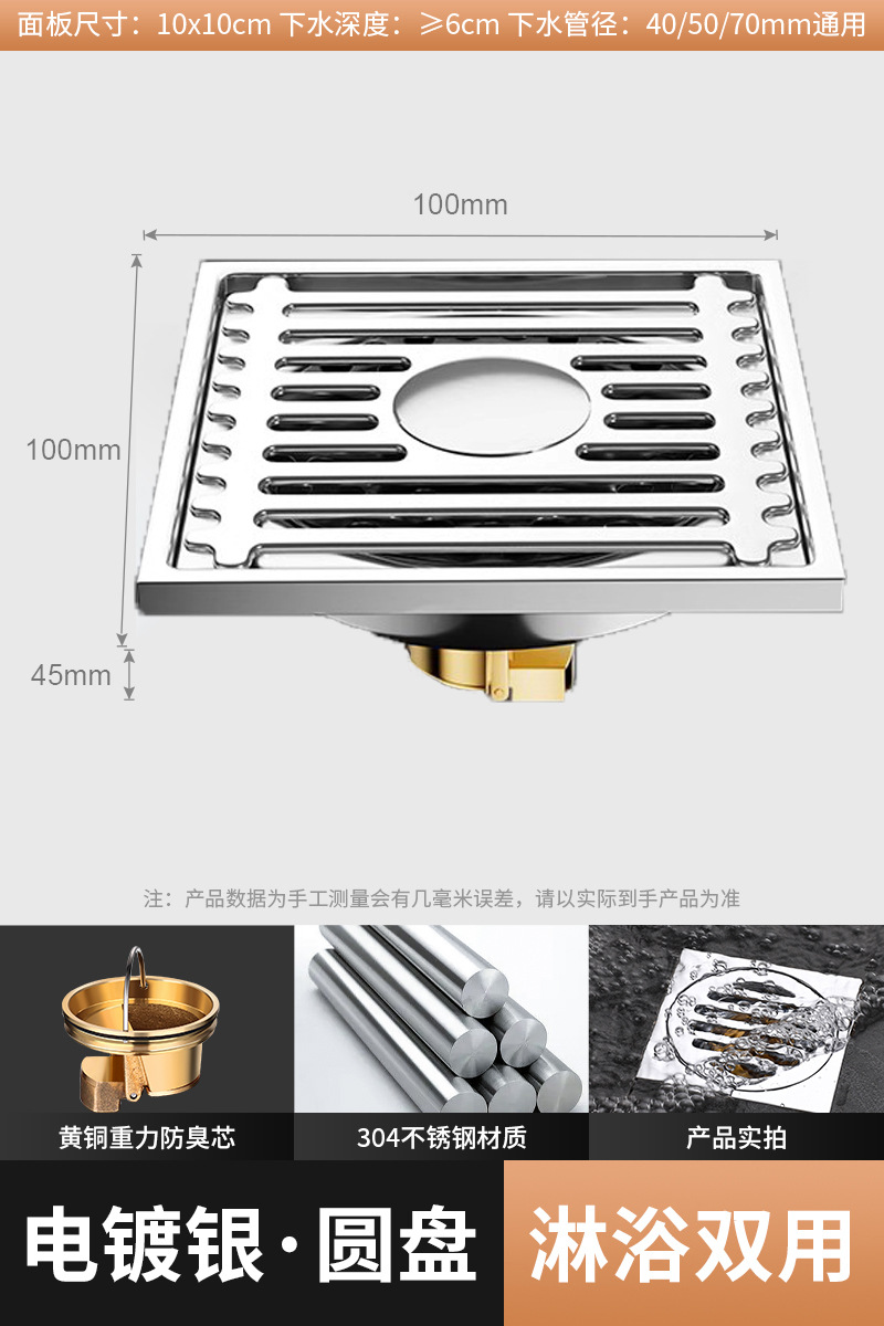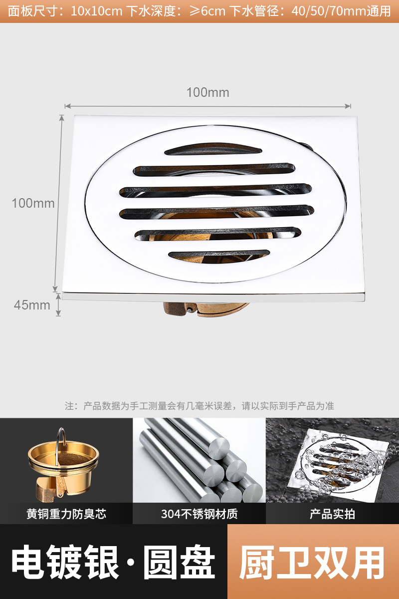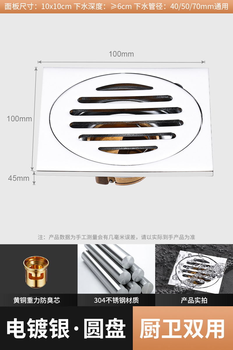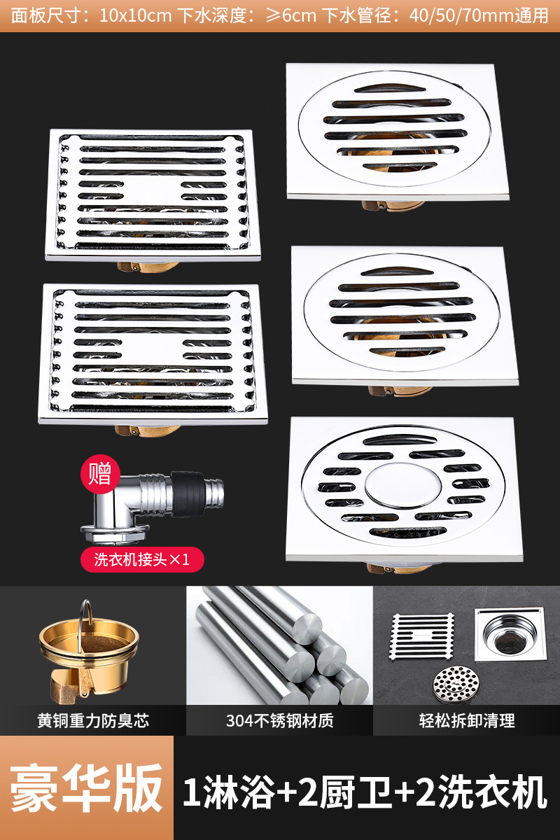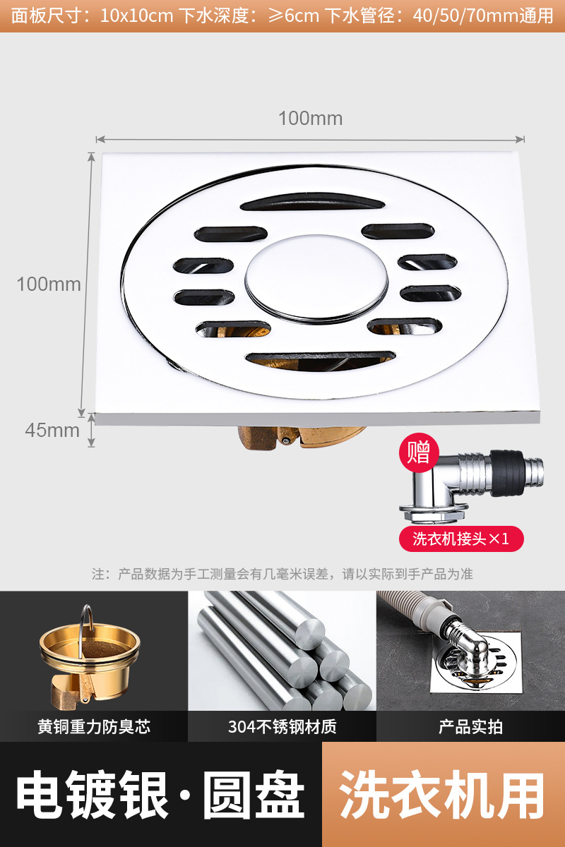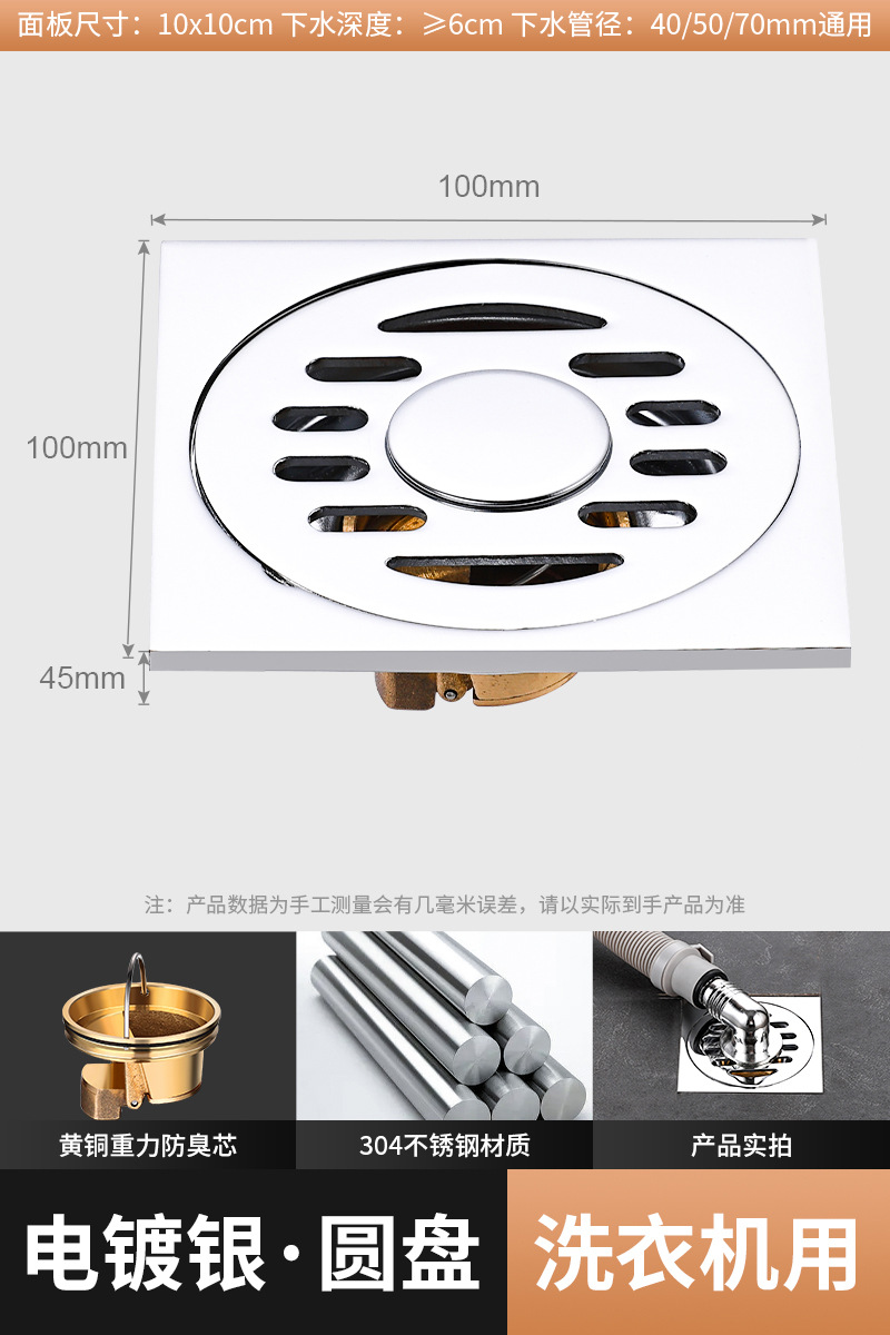 304 스테인레스 스틸 바닥 배수 두꺼운 탈취제 욕실 하수도 세탁기 모든 구리 유니버설 바닥 배수 코어스토어 가기