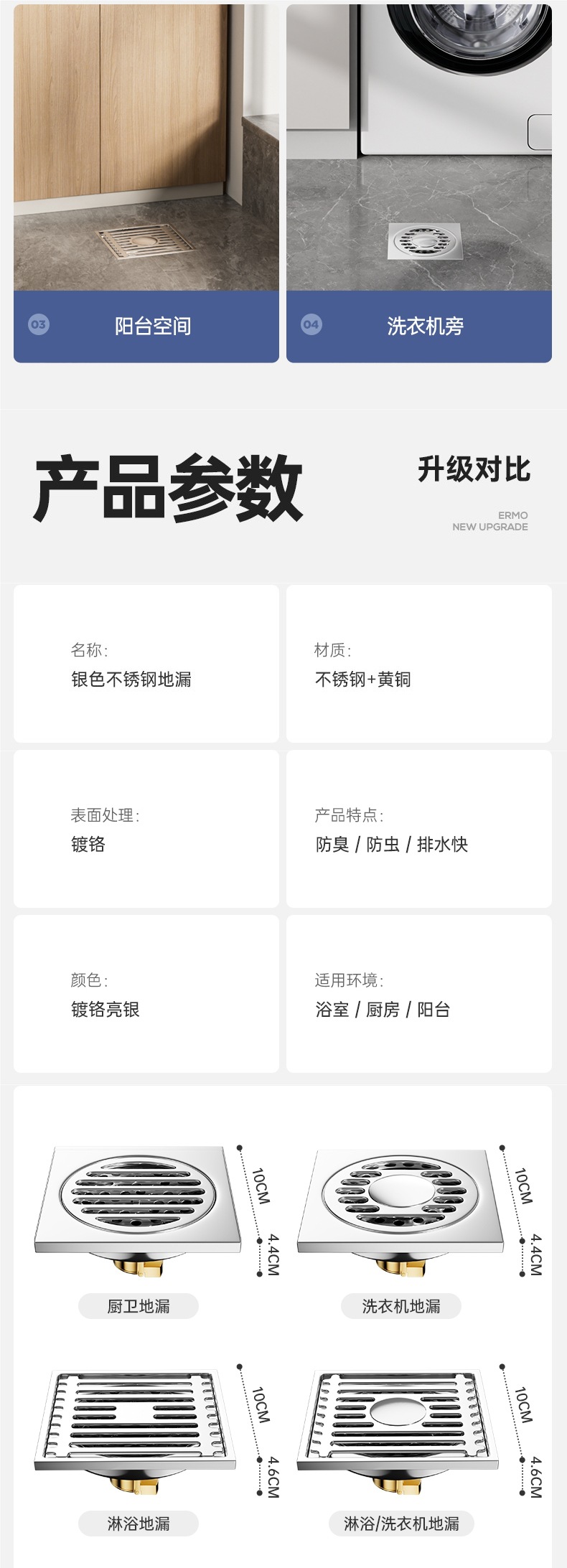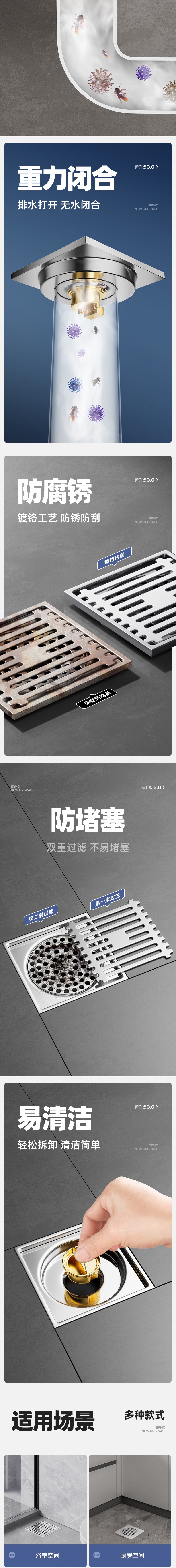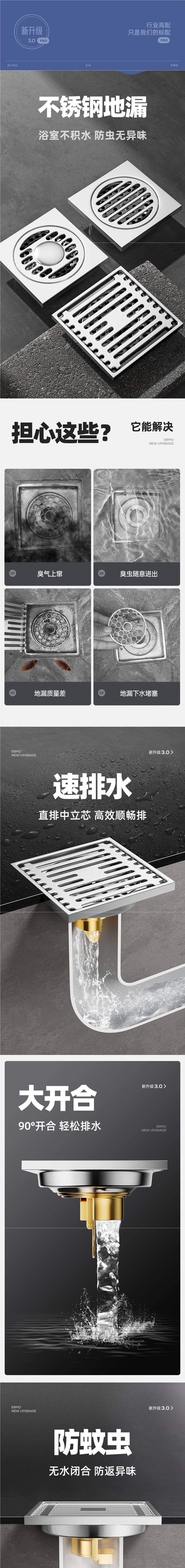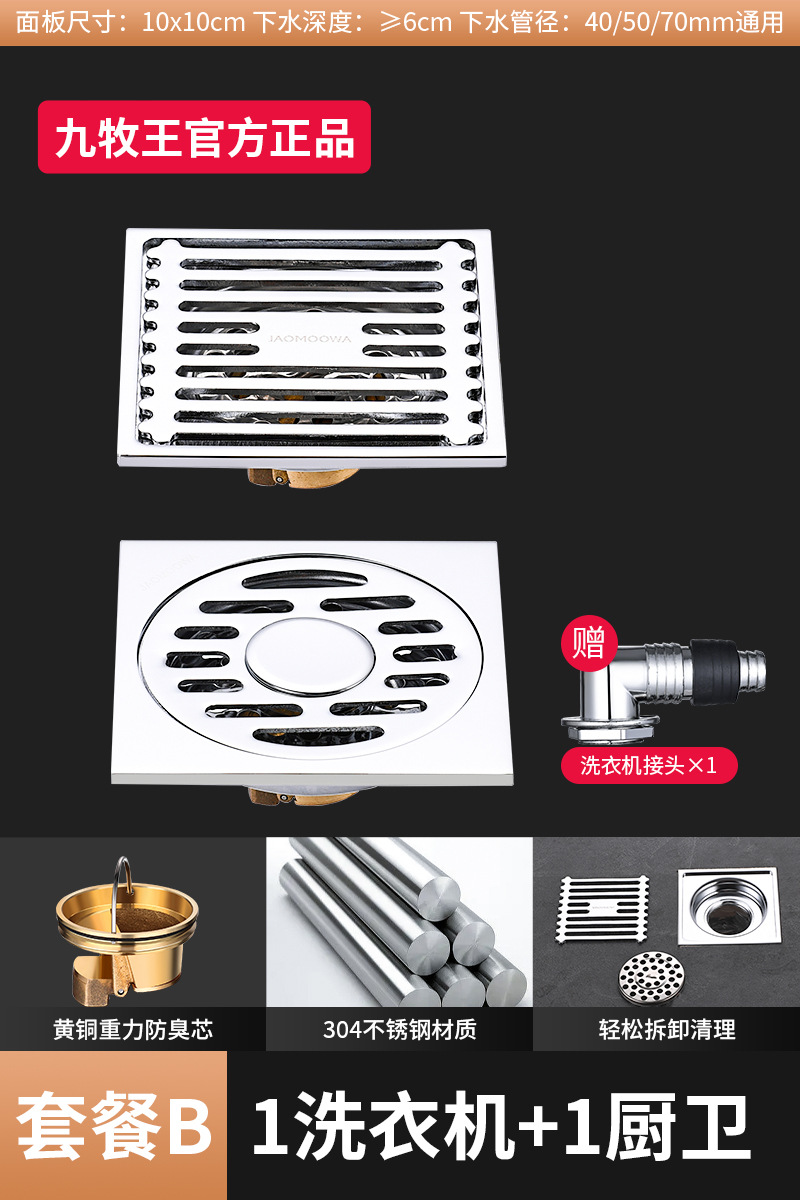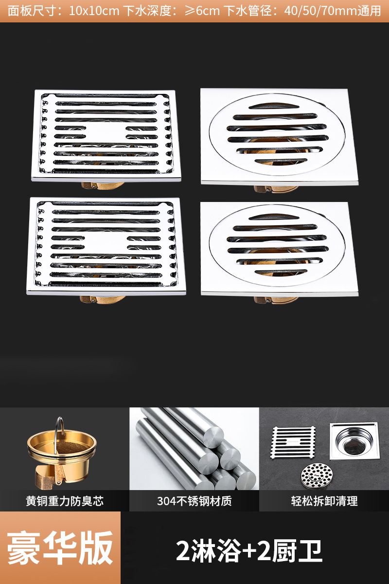 304 스테인레스 스틸 바닥 배수 두꺼운 탈취제 욕실 하수도 세탁기 모든 구리 유니버설 바닥 배수 코어스토어 가기
