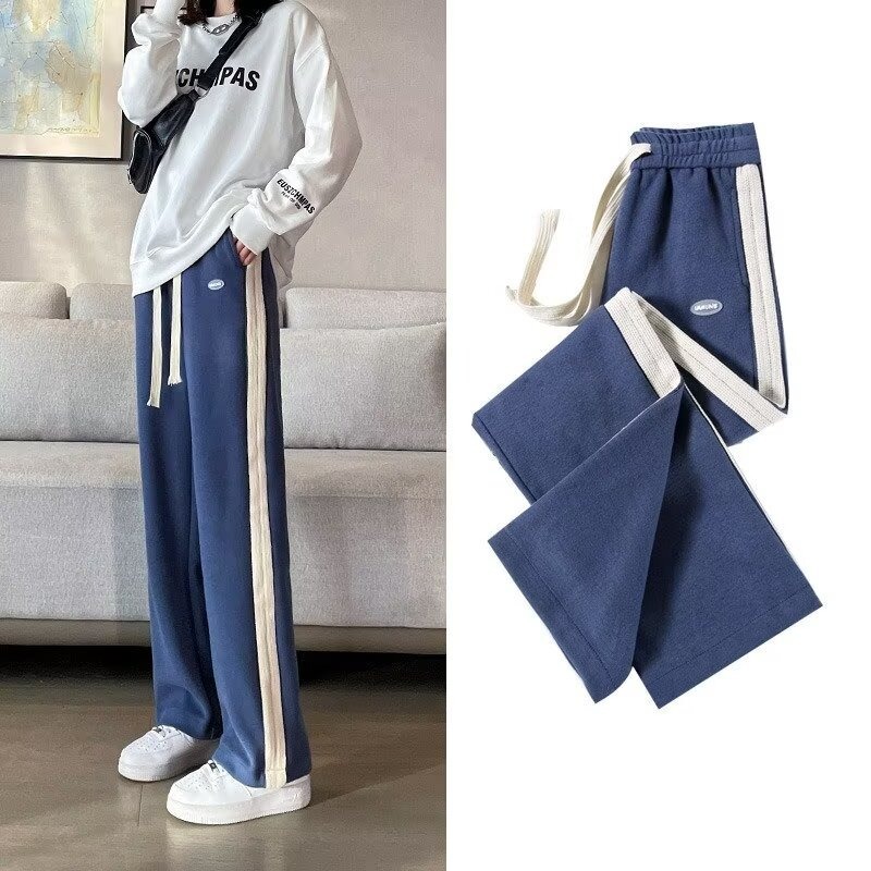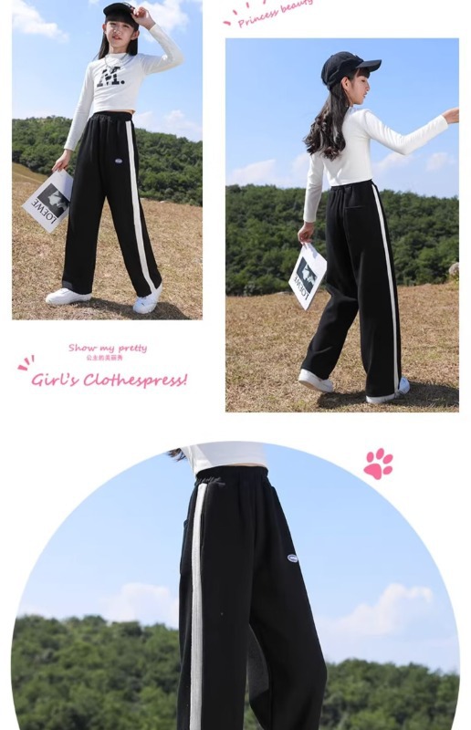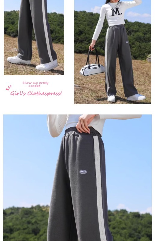 가을 소녀의 캐주얼 넓은 다리 바지 봄과 가을 니트 긴 바지 한국 스타일 소녀의 스트레이트 느슨한 큰 소년스토어 가기