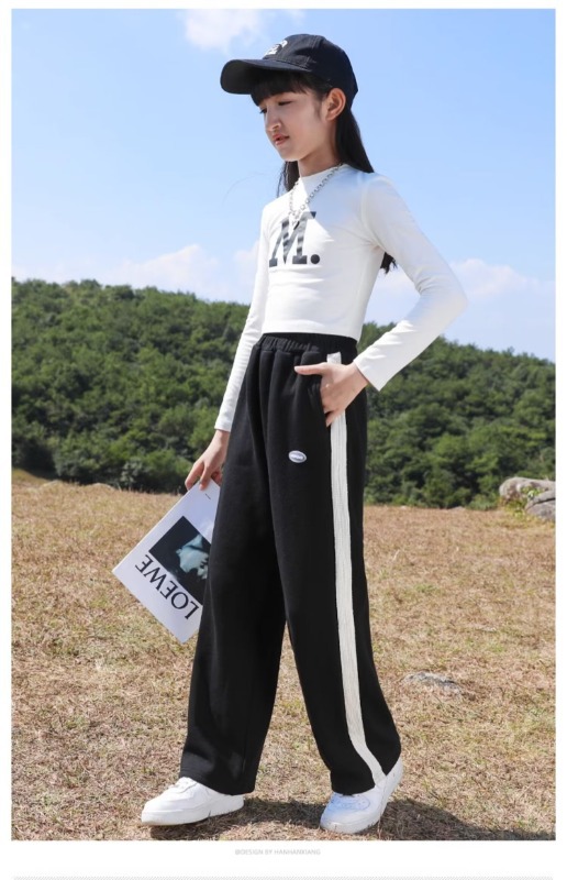 가을 소녀의 캐주얼 넓은 다리 바지 봄과 가을 니트 긴 바지 한국 스타일 소녀의 스트레이트 느슨한 큰 소년