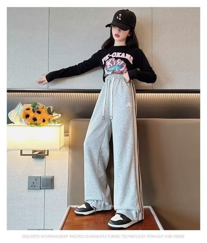 소녀 바지 봄과 가을 한국 스타일 새로운 스타일 중대형 어린이 운동복 올 매치 스포츠 바지 어린이 캐주얼 봄과 가을 넓은 다리 바지