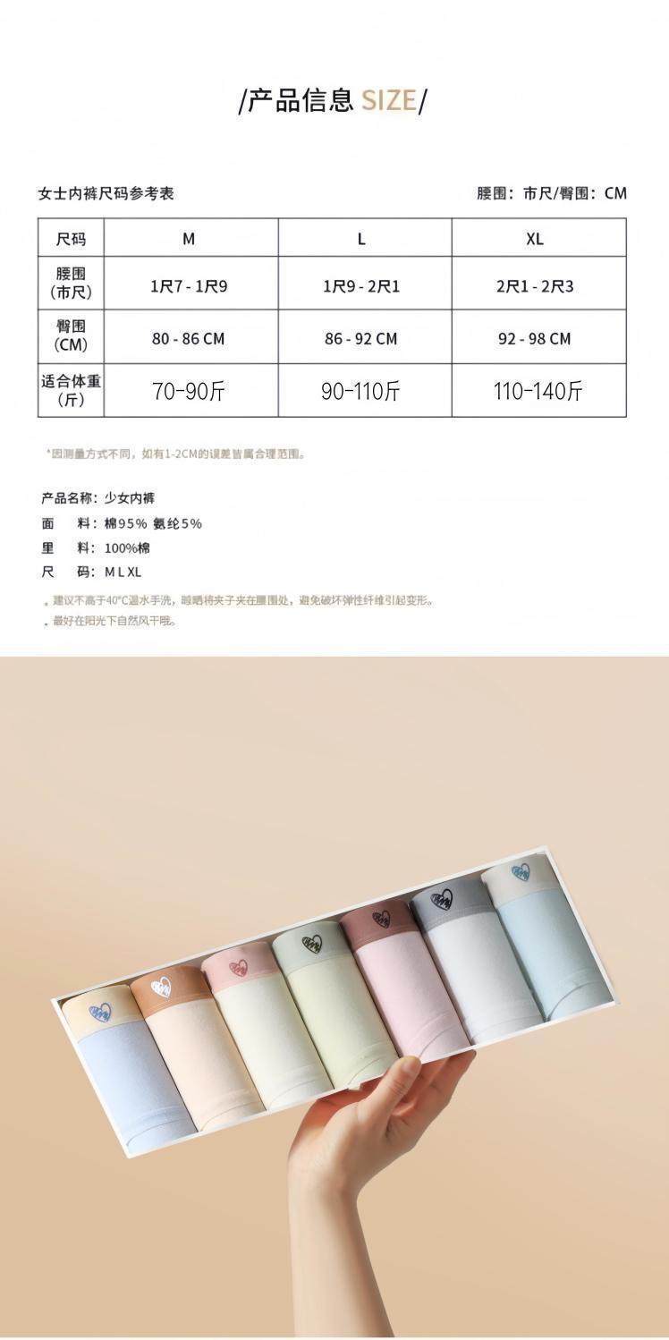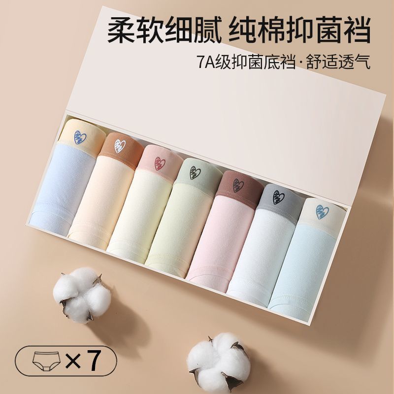 2025 새로운 # 여성면 속옷 7A100% 면 가랑이 허리 학생 통기성 브리프 얇은스토어 가기