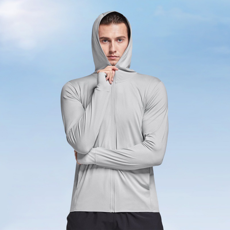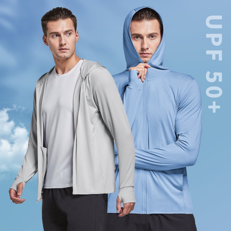 Markable 남성용 여름 긴팔 솔리드 컬러 야외 캐주얼 등산 후드가 달린 태양 보호 의류 스킨 의류 재킷 풀