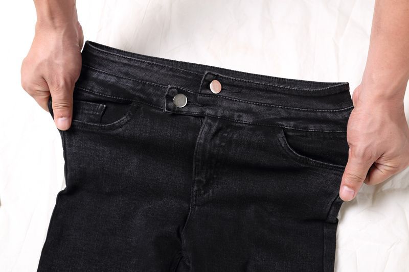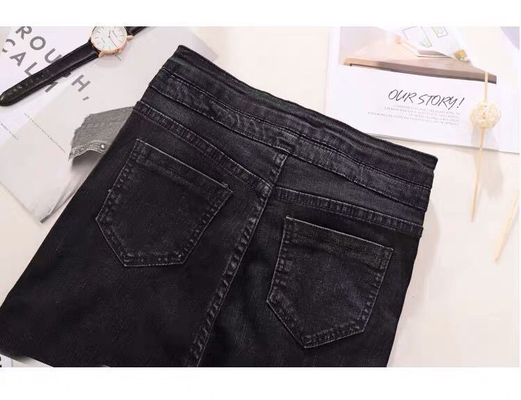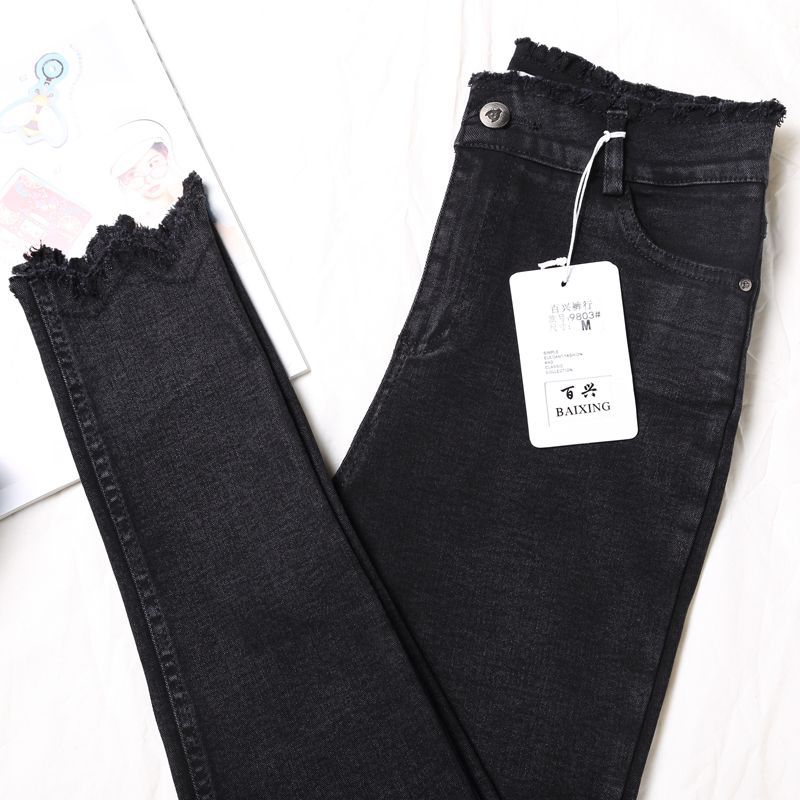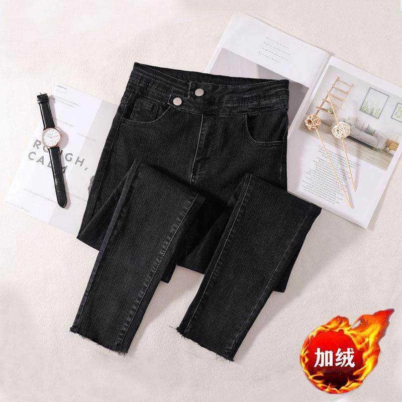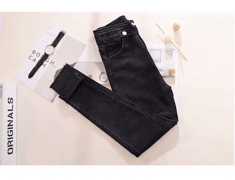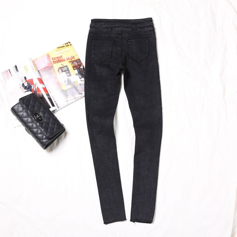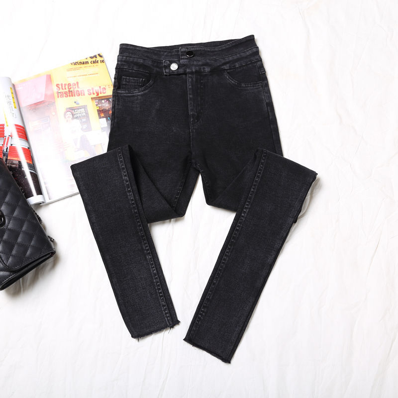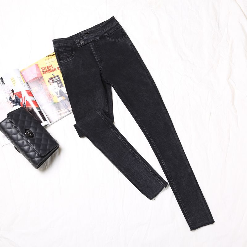 높은 허리 청바지 여성의 봄과 가을 새로운 단단한 슬리밍 더블 브레스트 블랙 레깅스 연필 바지스토어 가기