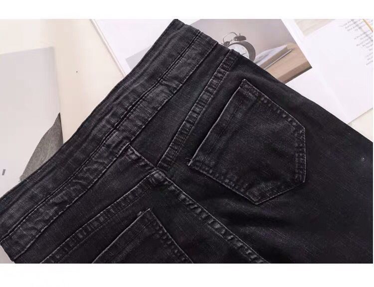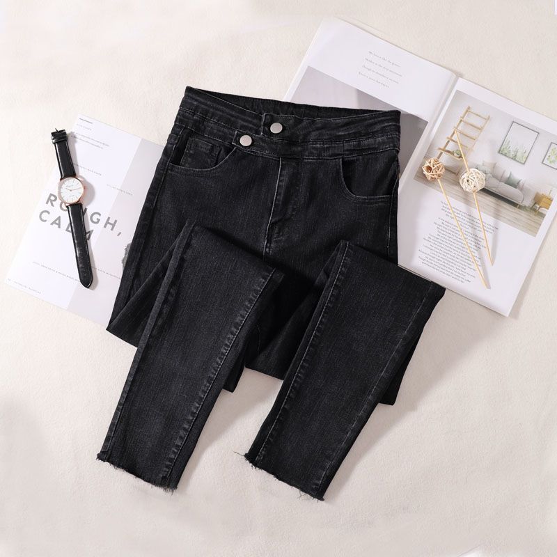 높은 허리 청바지 여성의 봄과 가을 새로운 단단한 슬리밍 더블 브레스트 블랙 레깅스 연필 바지