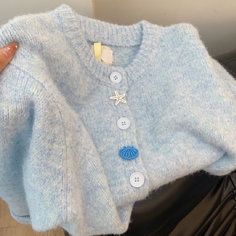 [데이 핫 픽] 밀크 블루 젠틀 윈드 소프트 왁스 고급 니트 카디건 봄 · 가을 여성 밀크 푸푸 게으름