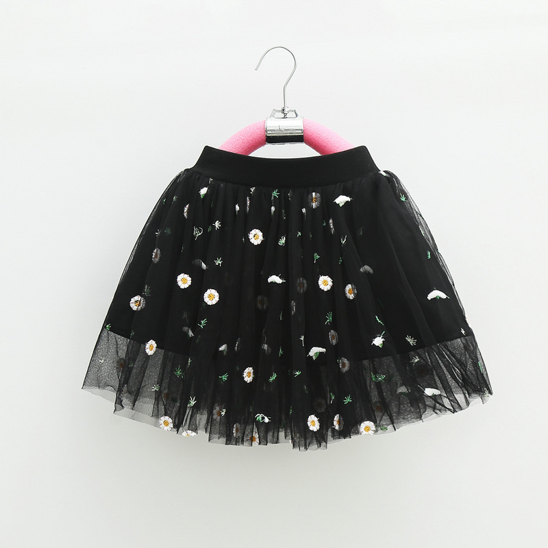 2025 새로운 여자 작은 국화 자수 스커트 아기 소녀 작은 꽃 메쉬 스커트 댄스 스커트 어린이 스타일