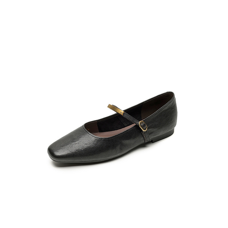 금속 버클이 달린 스팟 천연 가죽 작은 사각형 발가락 메리 제인 여성 신발 봄 새로운 다용도 통근 두꺼운 낮은 굽
