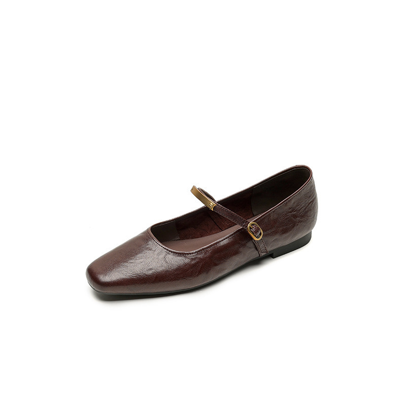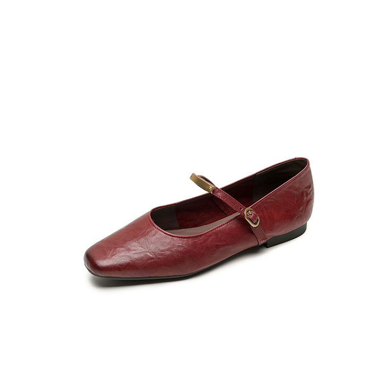금속 버클이 달린 스팟 천연 가죽 작은 사각형 발가락 메리 제인 여성 신발 봄 새로운 다용도 통근 두꺼운 낮은 굽스토어 가기