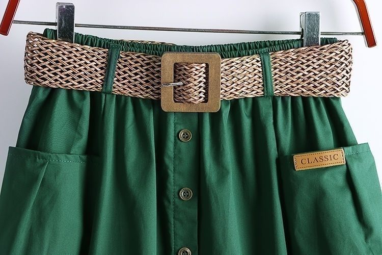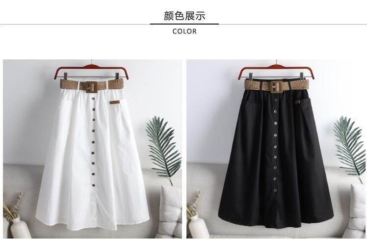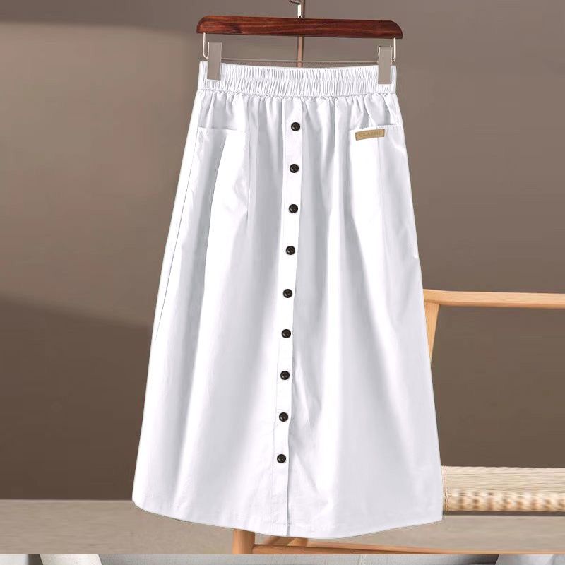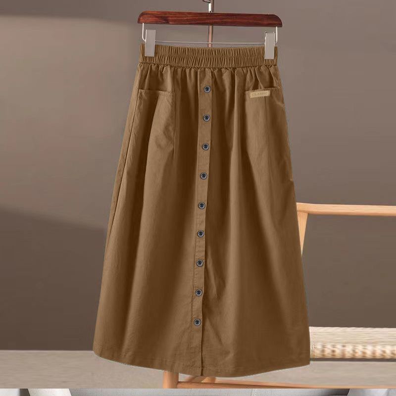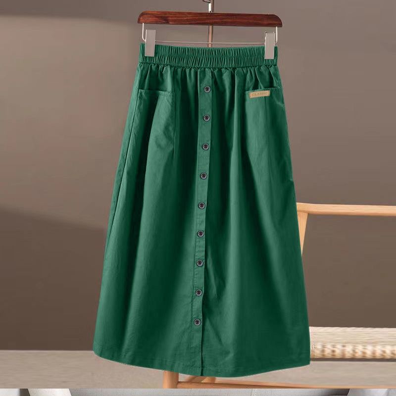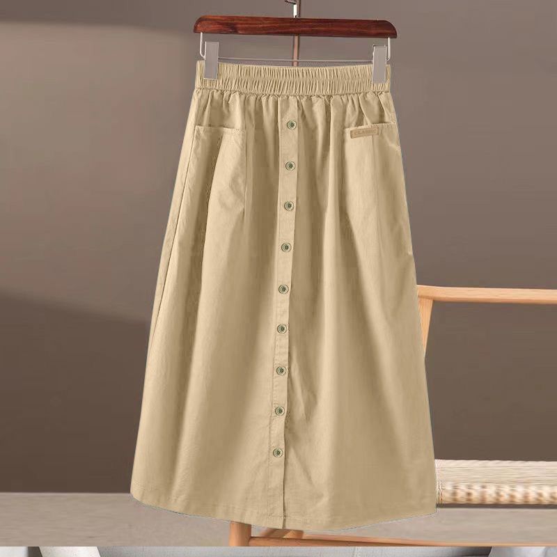 봄과 여름 새로운 한국식 하이 웨이스트 엘라 스토 스커트 대형 포켓 스플릿 슬리밍 중간 길이의 솔리드 컬러 A 라인 스커트