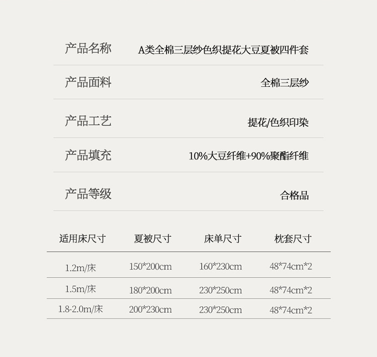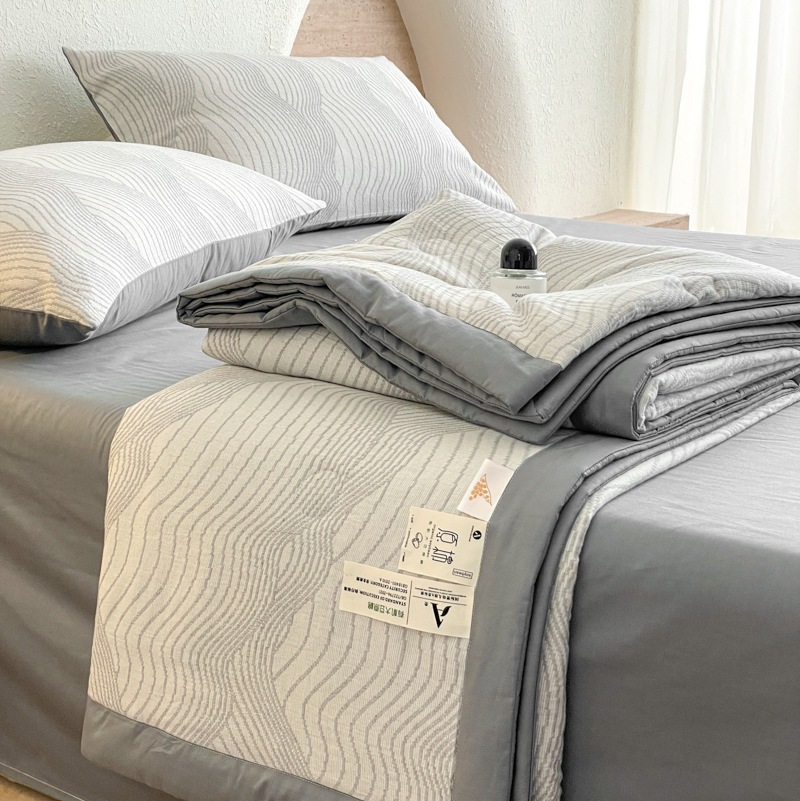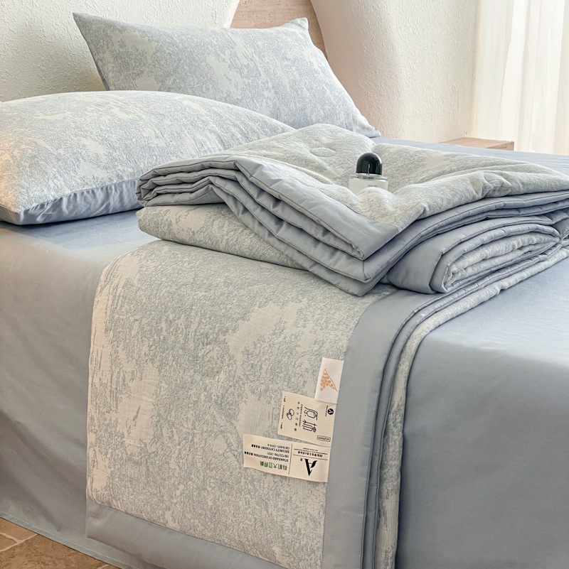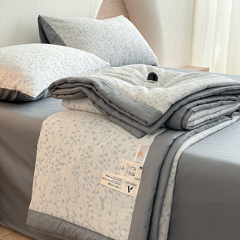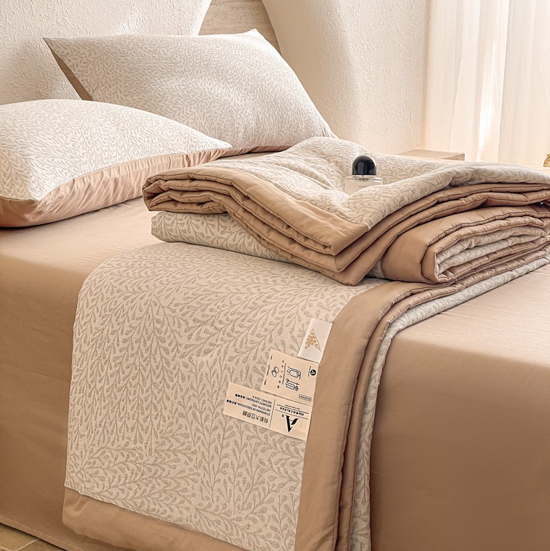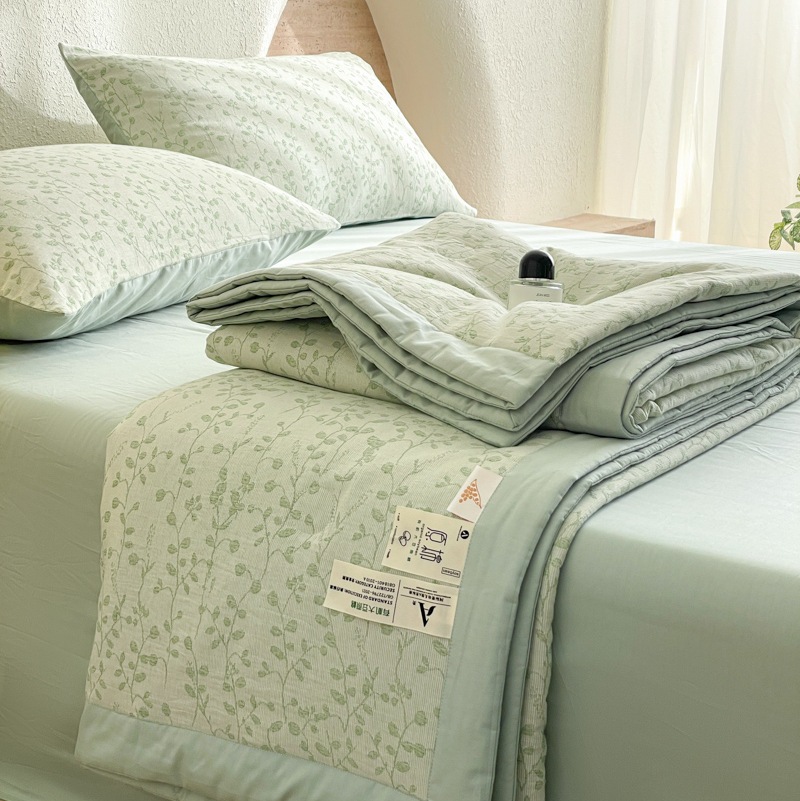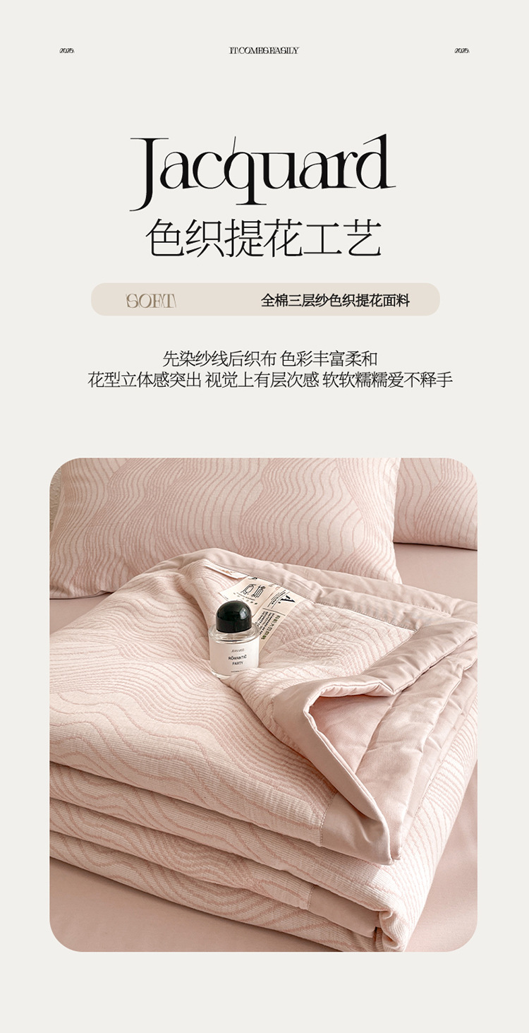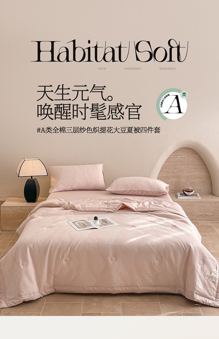2025 새로운 클래스 A 코튼 3 층 원사 염색 자카드 콩 여름 퀼트 여름 쿨 퀼트 에어컨 4 피스 세트