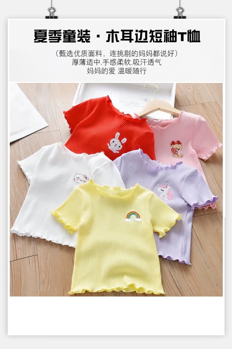 신형 한국형 여자 아기 여름 올매치 반팔 티셔츠 아이스실크 실 이어 엣지 스트레치 중소 어린이 탑스토어 가기